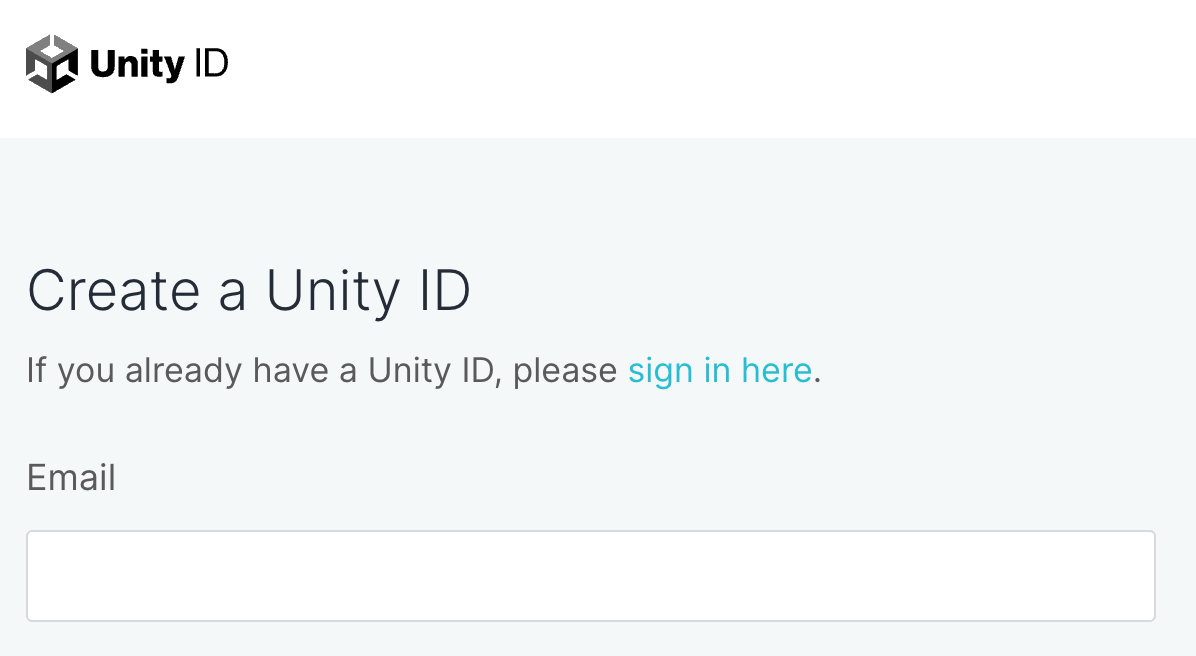 Once you have Unity Hub installed, it will ask you to log in with the account you created in the prior step.