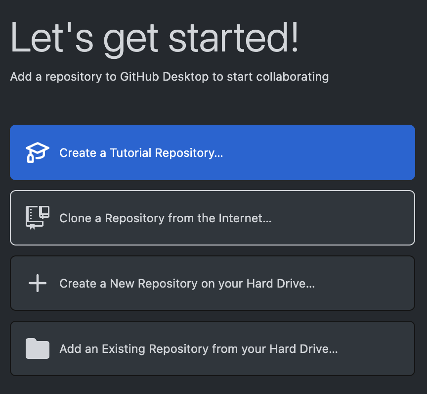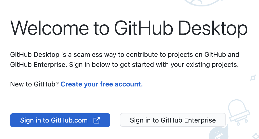 Upon running GitHub Desktop, you'll be presented with the login screen.