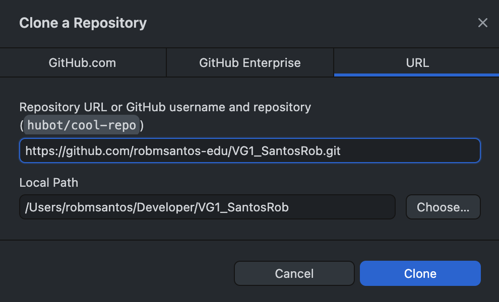 The URL can be found under the Code dropdown on the project's webpage. Either approach, should result in the same project being downloaded to your hard drive. The URL approach can be useful for accessing projects created by others.