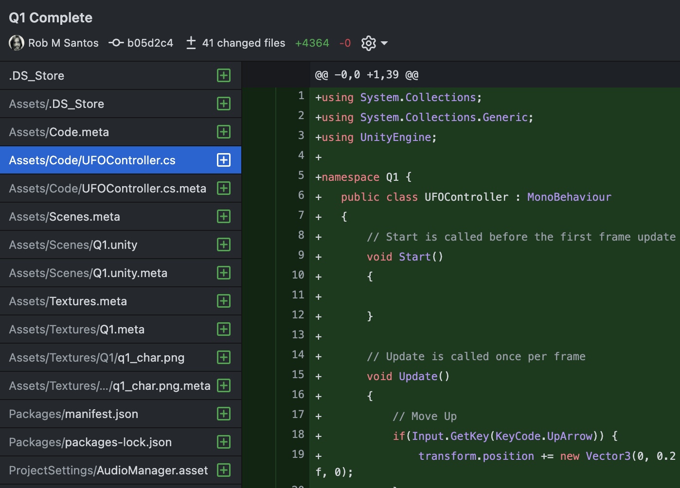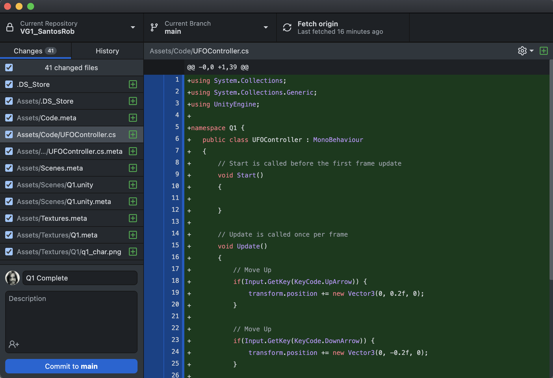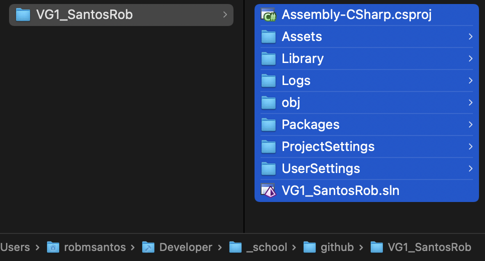 With Unity closed, move all your project files into the Git project folder. You will make future edits in this new project location. Any time you move folders around, you may need to re-add the project to the Unity Hub or the GitHub Desktop interface.