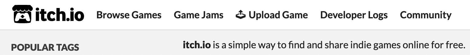 We will use a free games hosting service known as itch.io for class. itch.io is similar to services such as Steam or the App Store, but is more open and accessible. (It can take a really long time to get your games approved on Steam, but with itch.io, you simply upload and share your URL.)