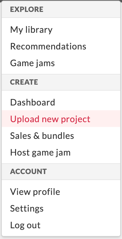 itch.io accounts are free. Once you've created an account and are logged in, you can find the Upload link under your Profile navigation.