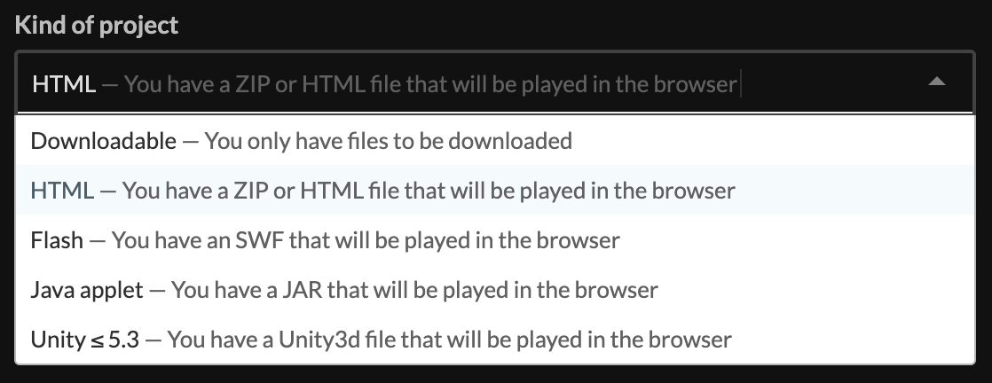 Finalize any other settings you wish to configure, upload the ZIP archive of the game's files, and save your game page.