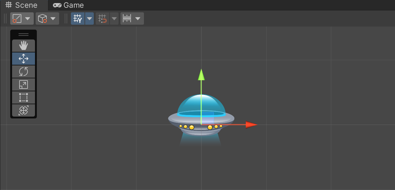 In the Sprite property, you can drag-and-drop the spaceship graphic from the Project tab into the Sprite blank in the Inspector tab. The other default settings should be fine.