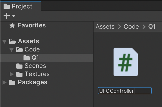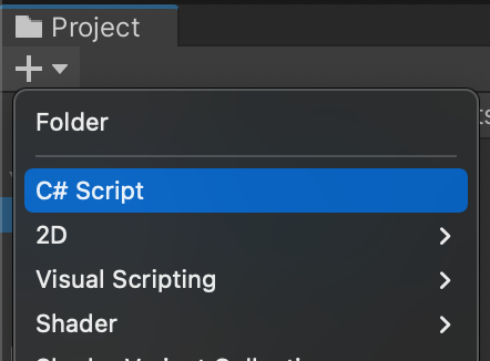 Create a C# file, which we will use as a “Behavior Script.” (C# is not technically a scripting language, but because C# replaced Boo and UnityScript in the engine, the terminology is still commonly used to describe programming in Unity. GameObjects are also like actors who follow a "script" programmed in C# for their behaviors.)