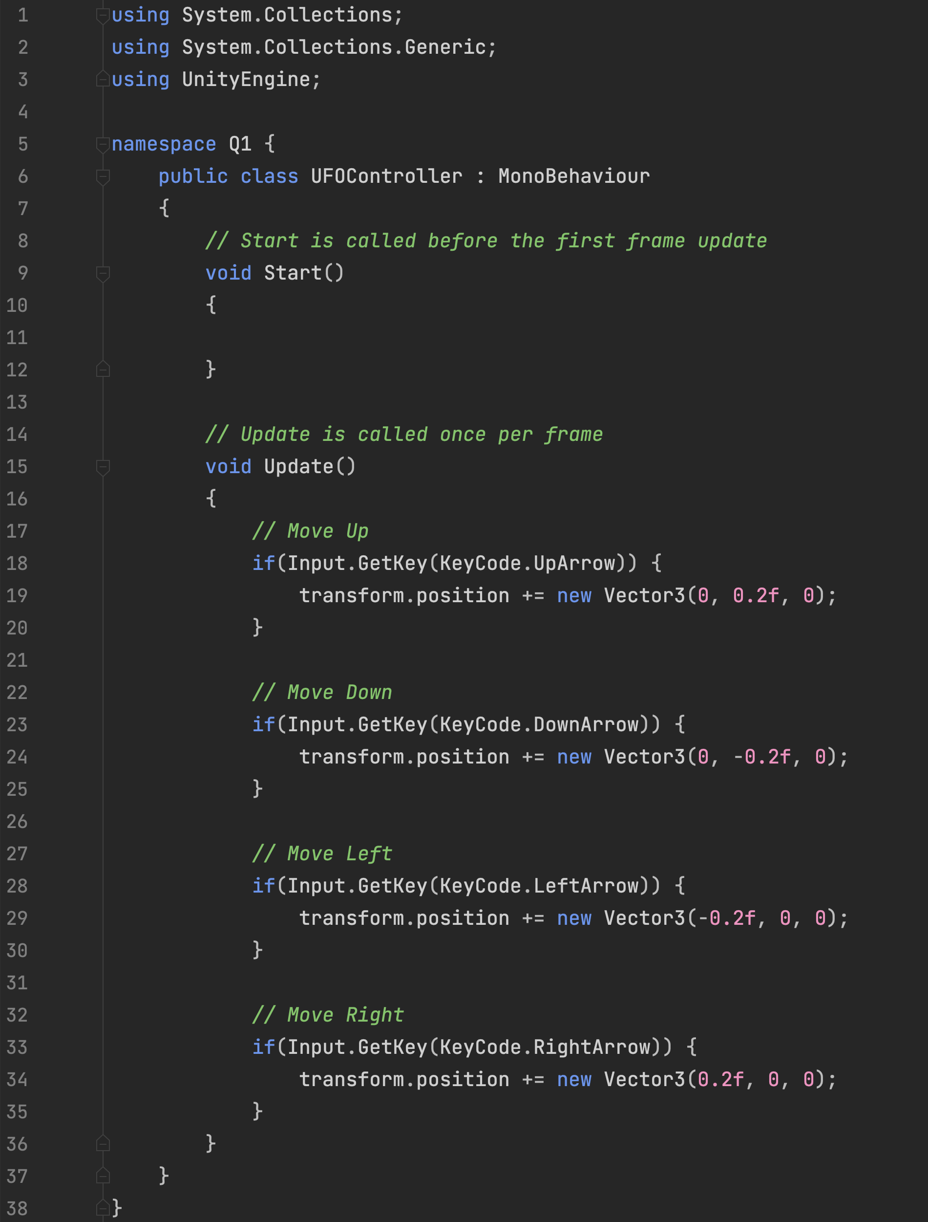 Click the Play button to test your game. Your character should move in the matching direction of each of the four arrow keys when pressed. You may notice that on faster computers, the character moves too fast to be controllable. We will learn how to fix this bug in the next assignment.