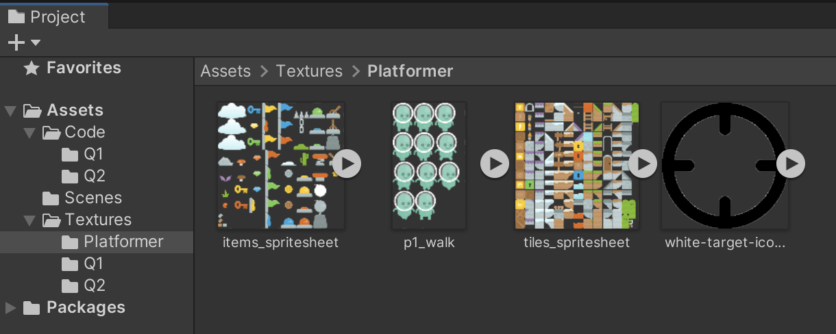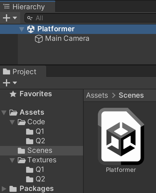 Create and open a new scene called Platformer. (We will use this scene for multiple assignments in the platformer genre throughout the semester.)