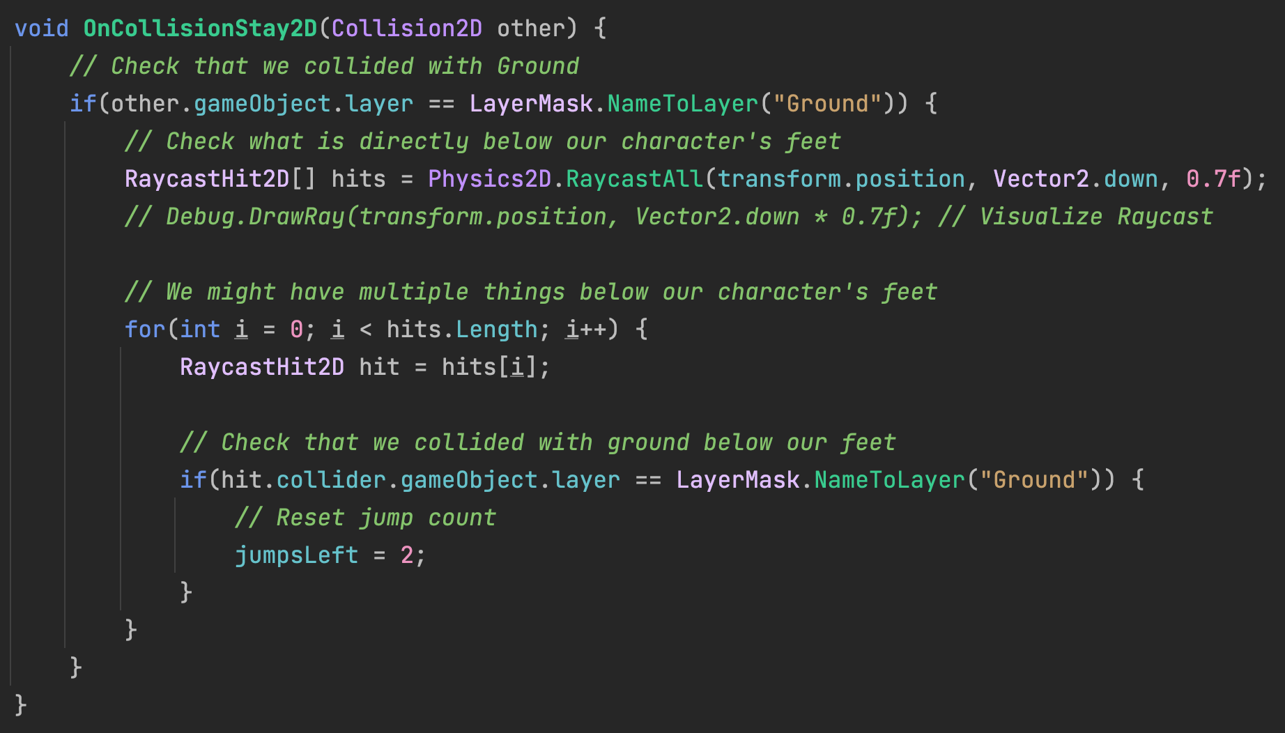 For a proper Double Jump, we must reset the jump counter when the player solidly lands on ground.