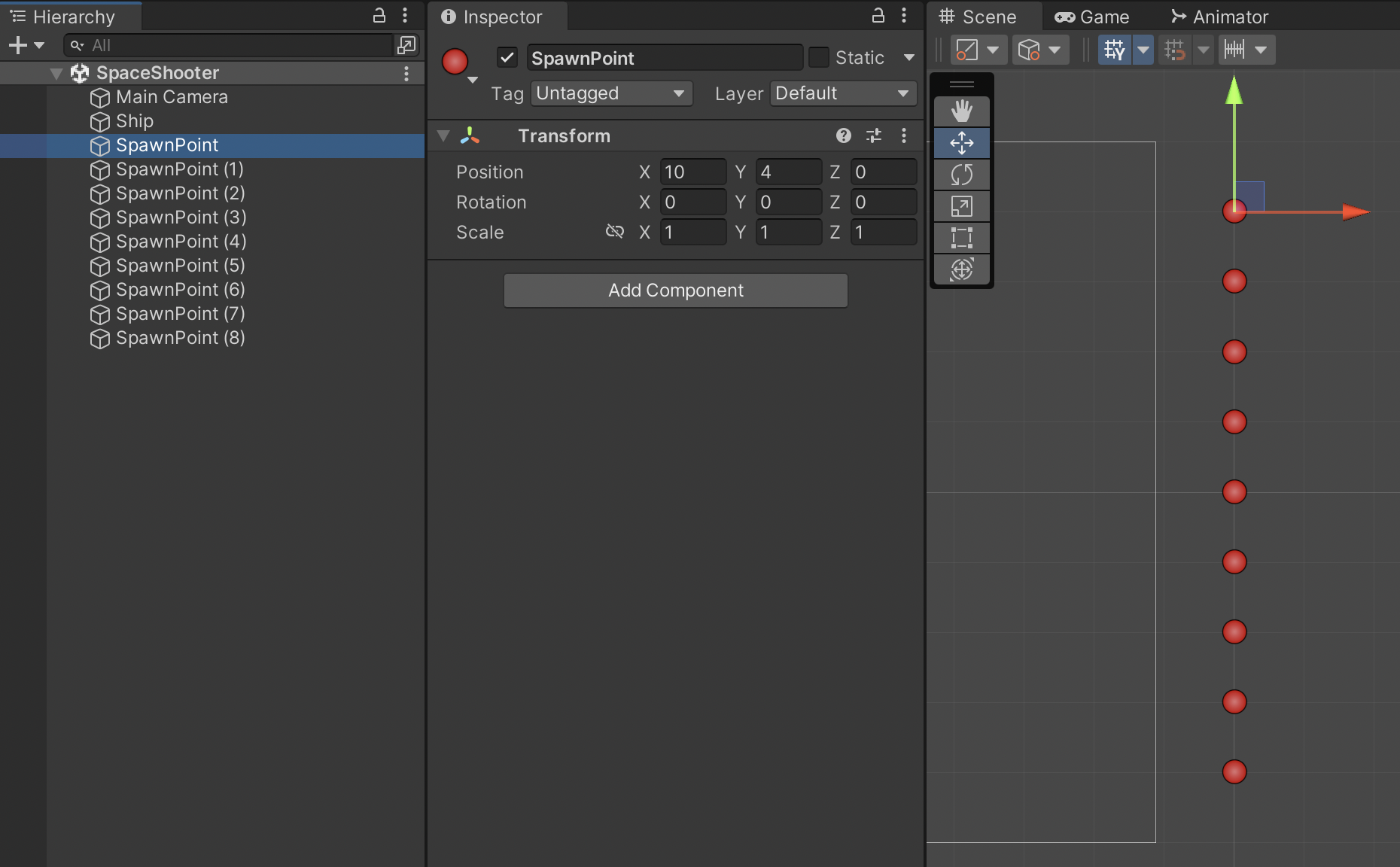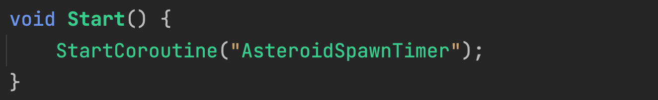 Although our coroutine loop repeats itself, we must start it in the first place. We want to start spawning asteroids at the Start of our game: