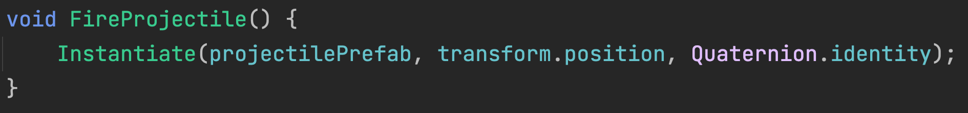 We create a FireProjectile function to call whenever we want our ship to shoot.