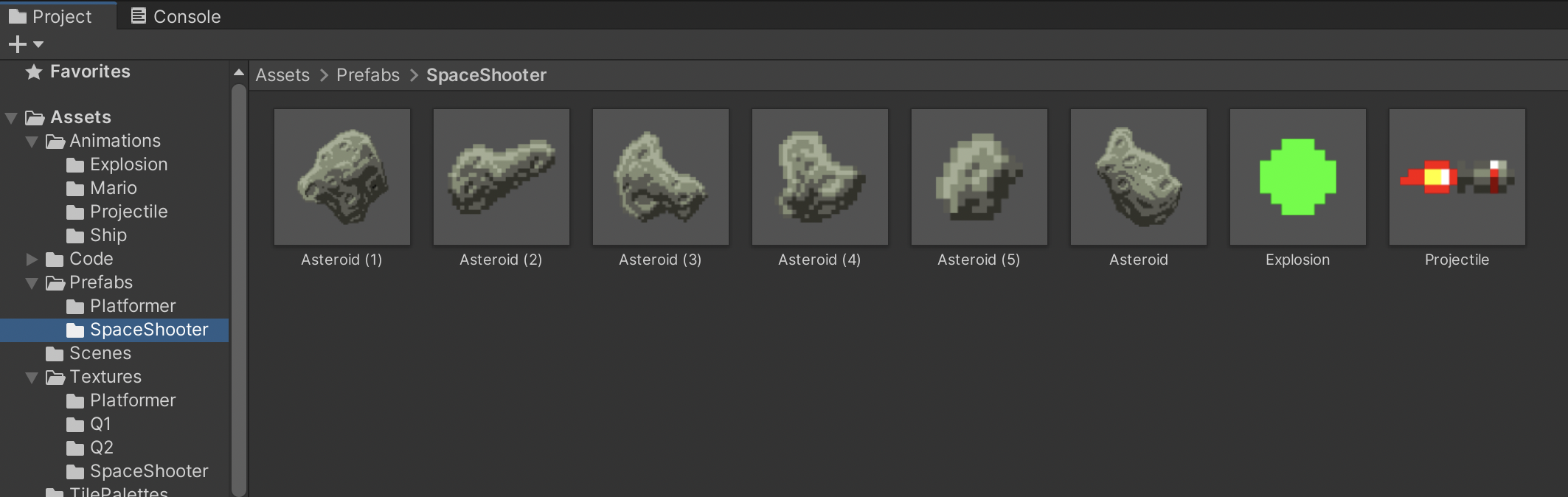 Finalize any updates to your prefabs and REMOVE all prefabs from the scene including the 6 asteroids, projectile, and explosion. (The ship should NOT be a prefab.)