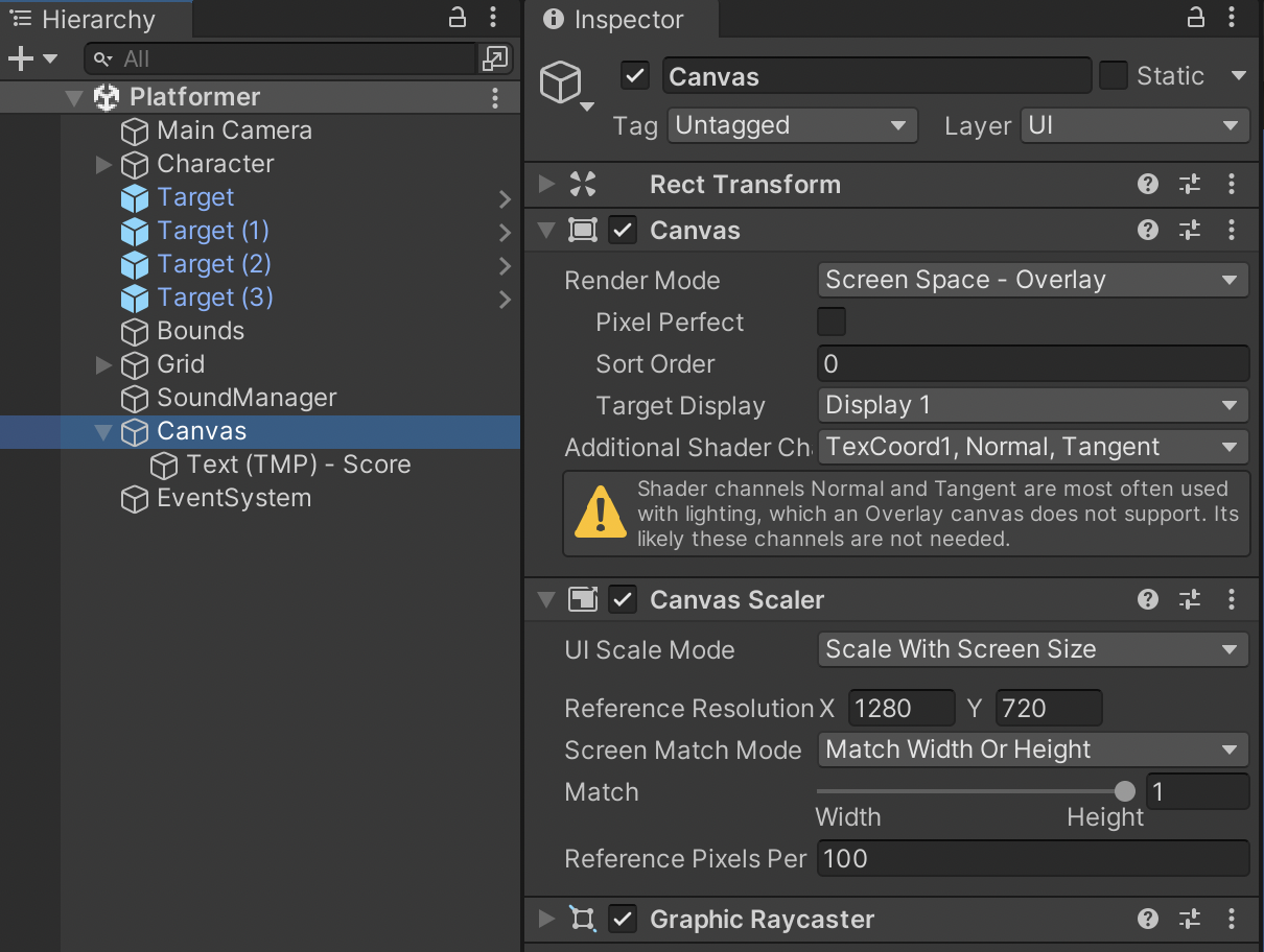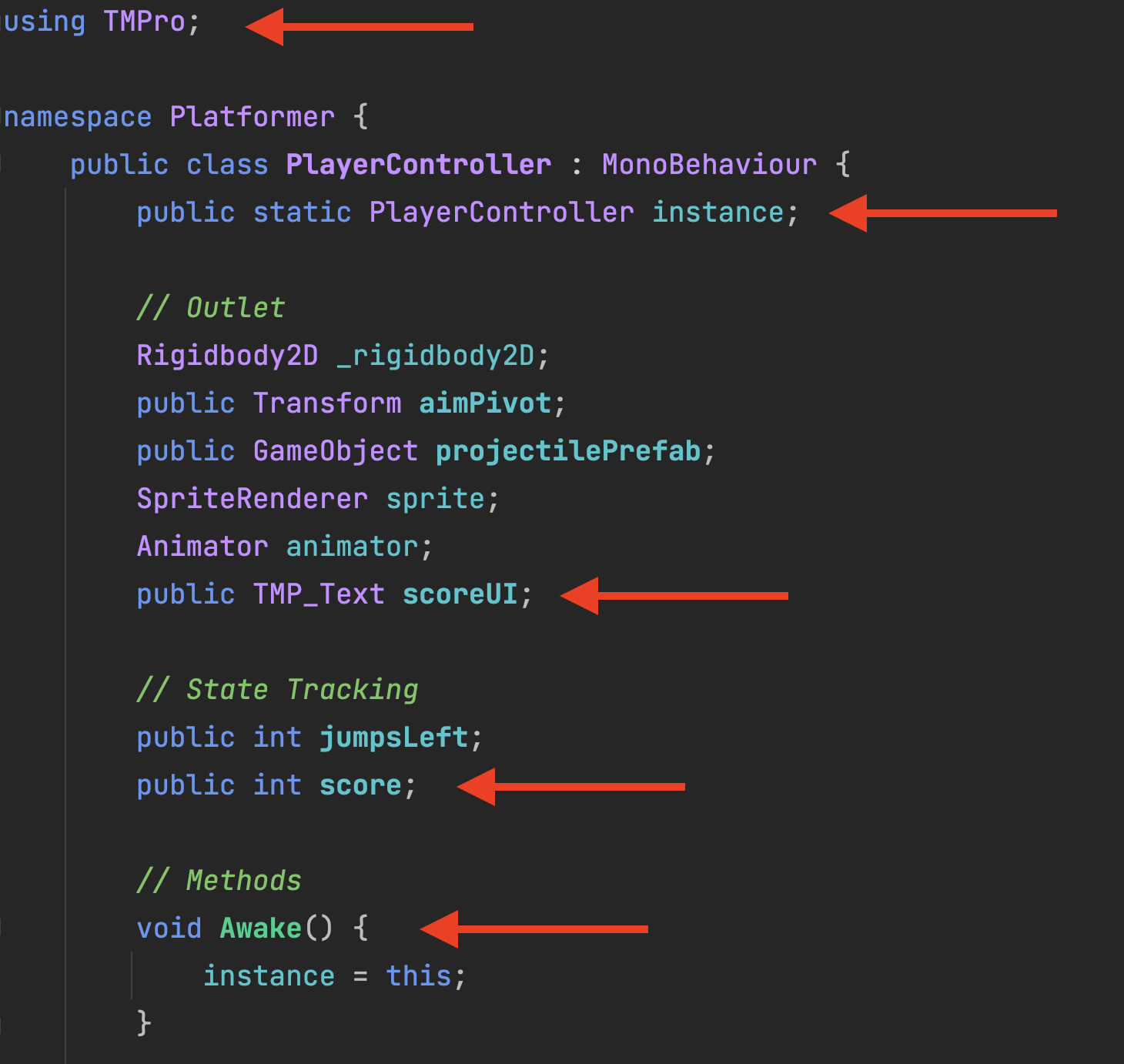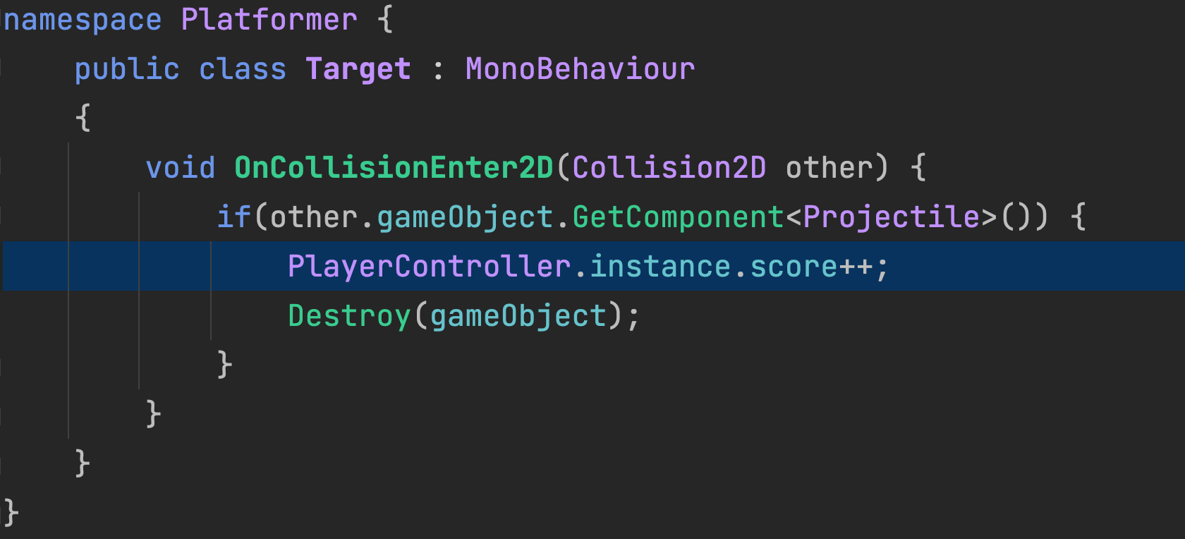 Be sure to have completed the prior two platformer assignments and reopen the Platformer scene.