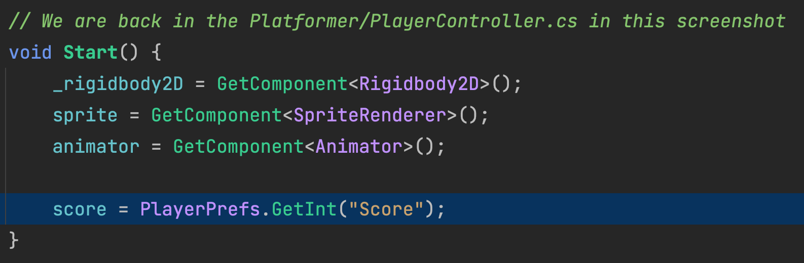 We are going to update the PlayerController to save an ongoing score counter, so the player can quit the game without losing their score.