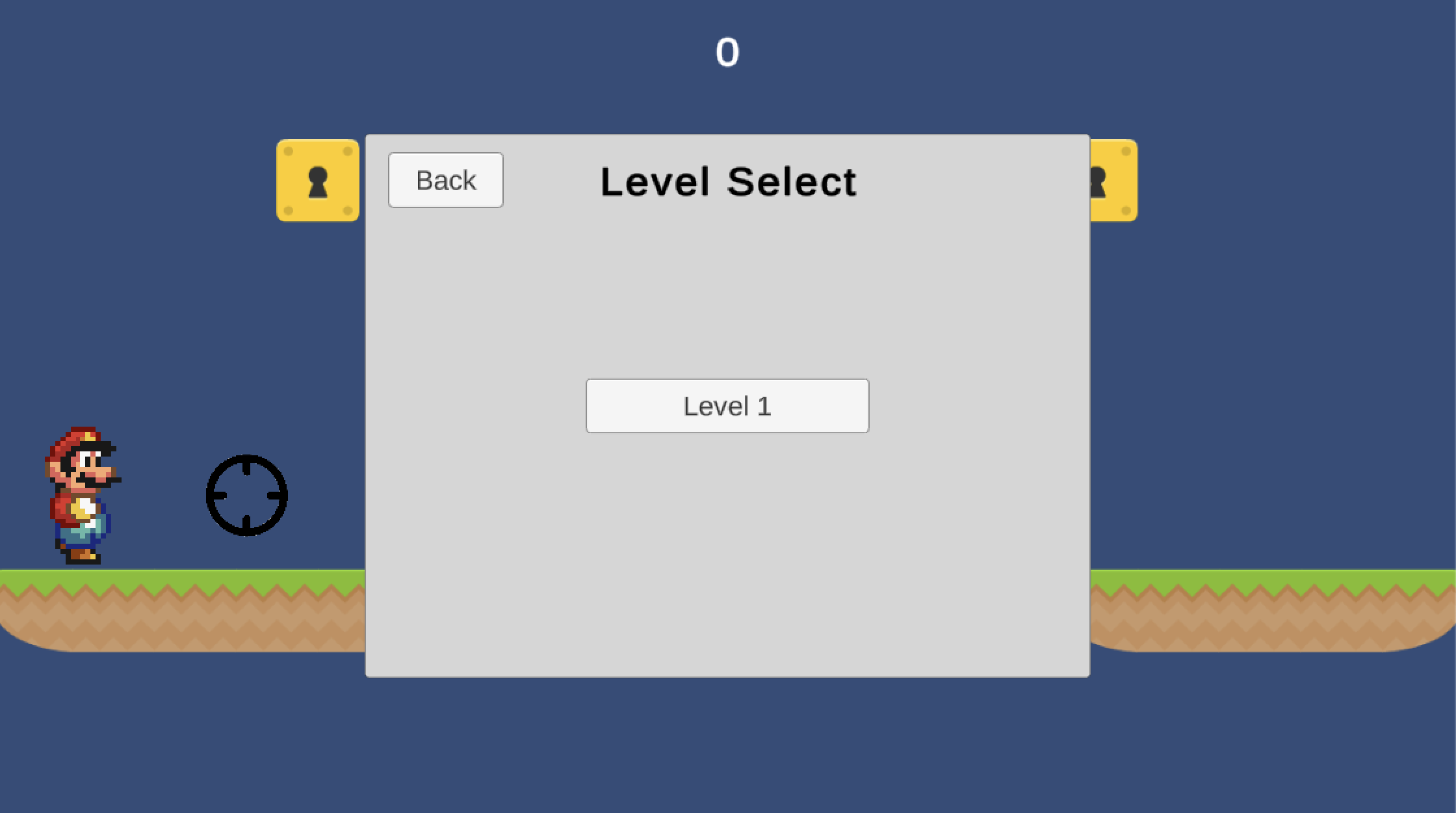 The Level 1 button requires a new function. The game only has one level, so we’ll just switch to our current scene, but this feature could be expanded for as many levels as you need.