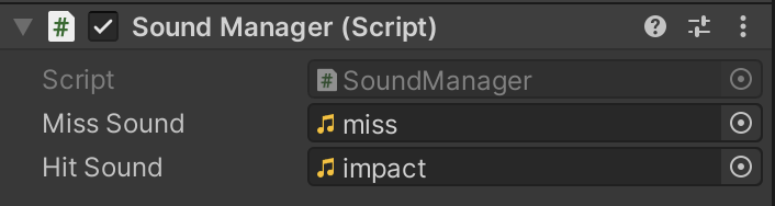 We also want Hit and Miss sounds when the projectiles hit the Targets and Ground, respectively. We can’t have the projectiles or targets play these sounds because they (and their Audio Source components) are destroyed right after impact.