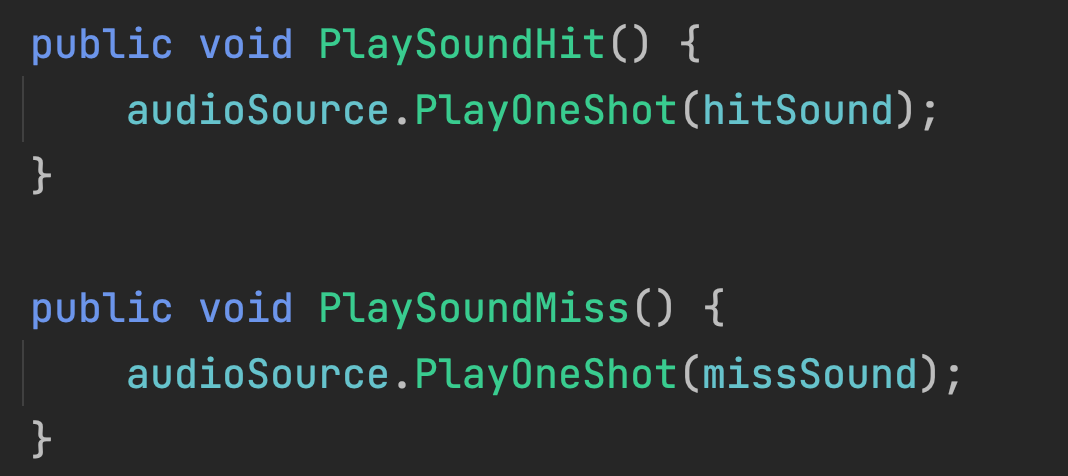 Next, we’ll create public functions that other objects can call to trigger sounds.