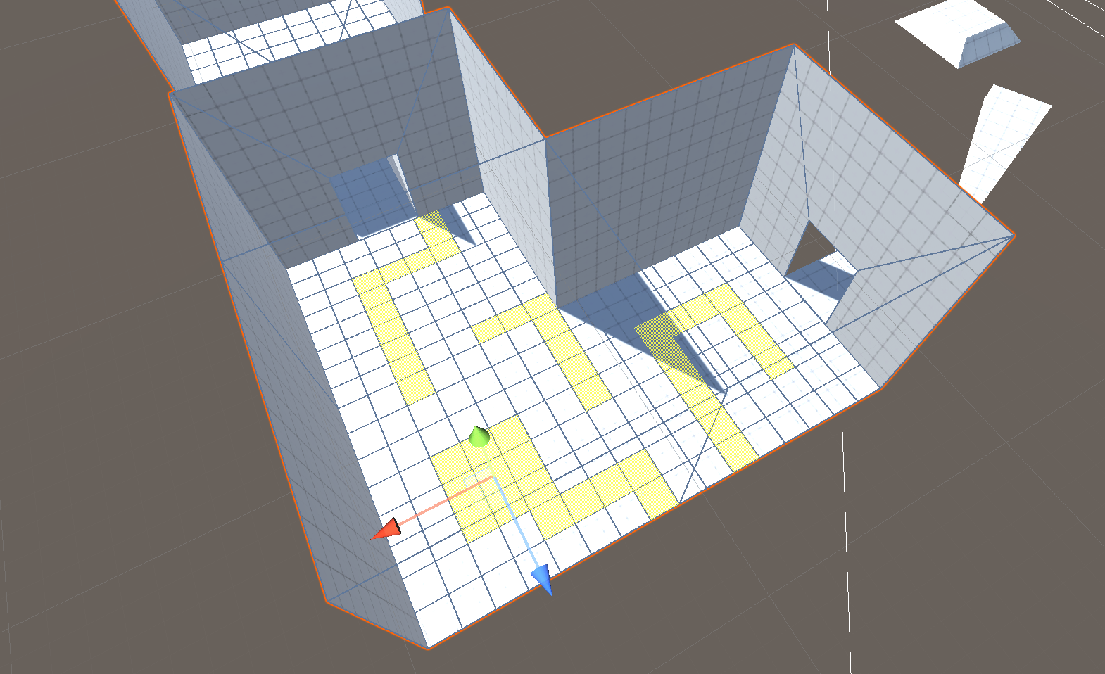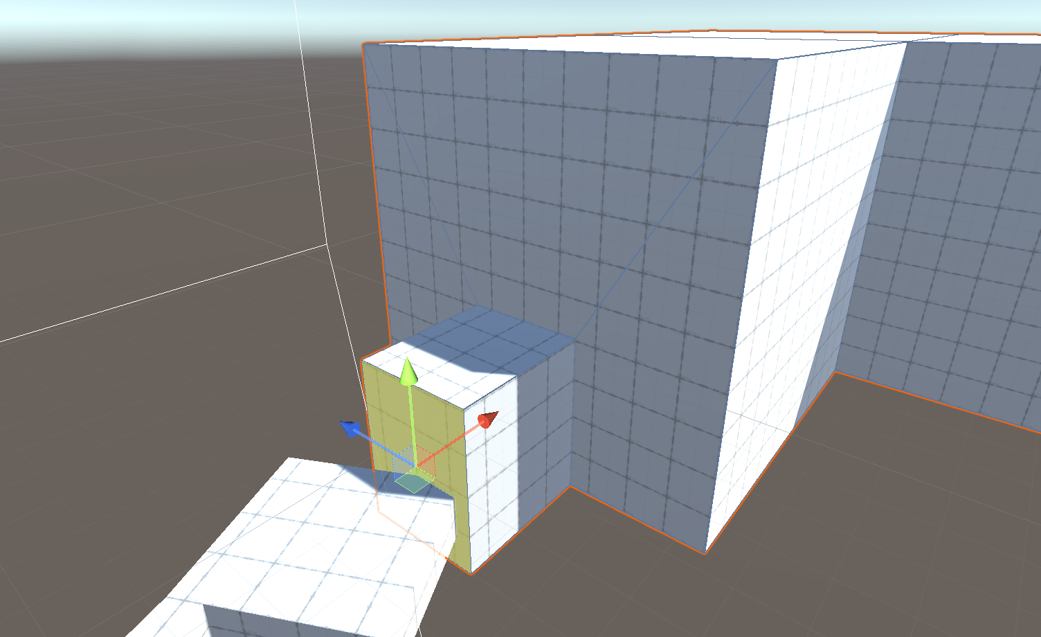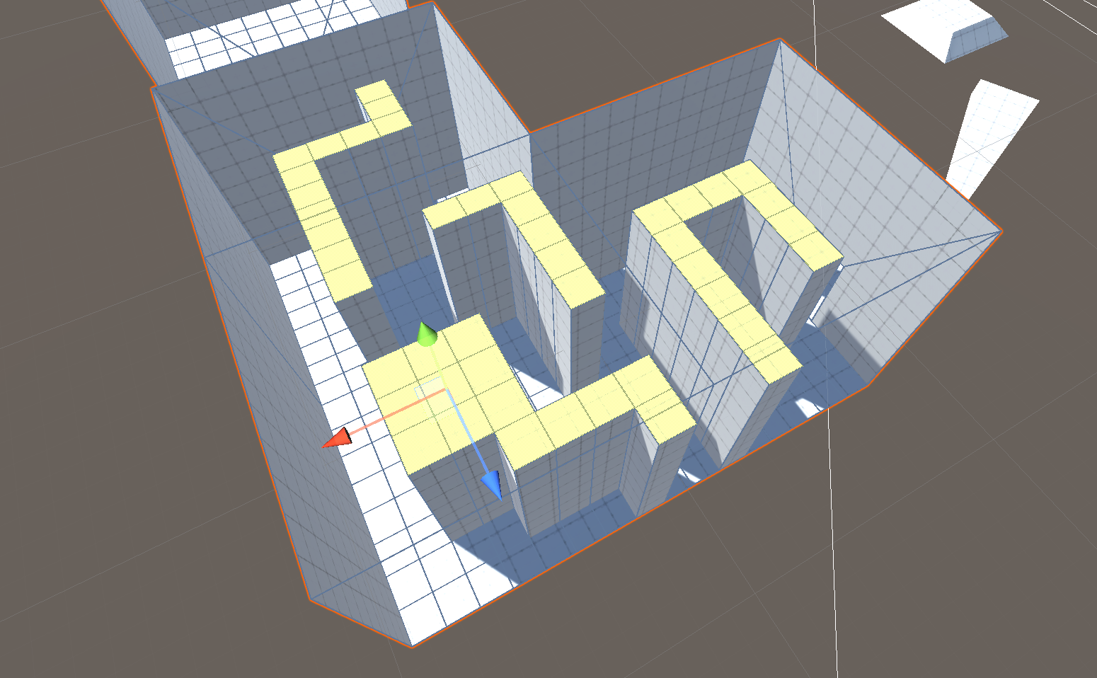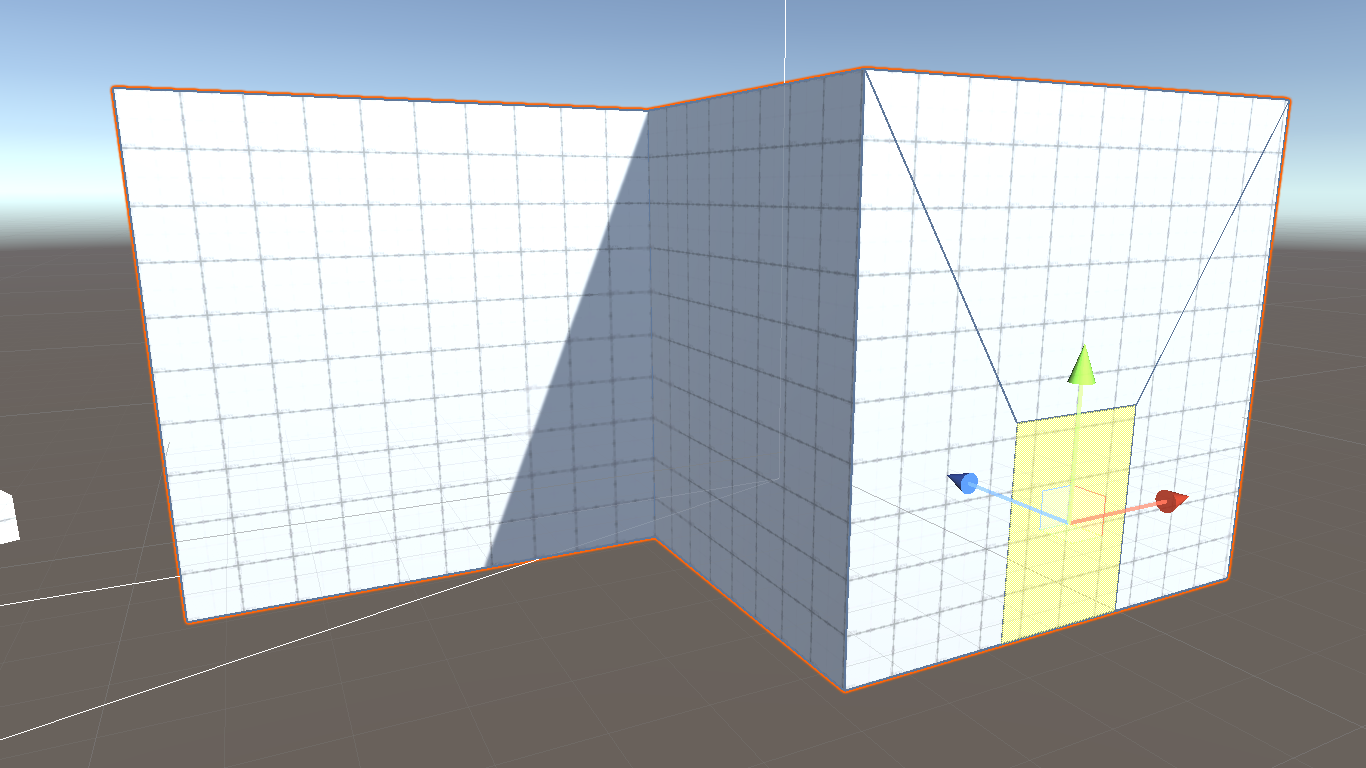 This portion of the level looks odd from the outside, so to create the look of a double-sided object, we actually have to duplicate the entire game object. Each game object will have their normals flipped in the opposite direction so that the rooms appear to have both inside and outside walls. If you make any changes to this shape, you will need to repeat making a clone with flipped normals to match.
