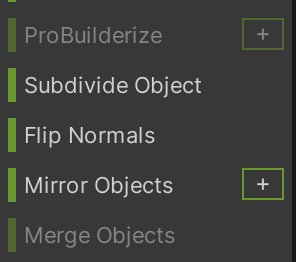 When the ProBuilder Window is active, additional Editor Modes show up in the top center of the Scene tab. From these icons, you can identify that these four modes depict operating on a 3D model based on 4 aspects: