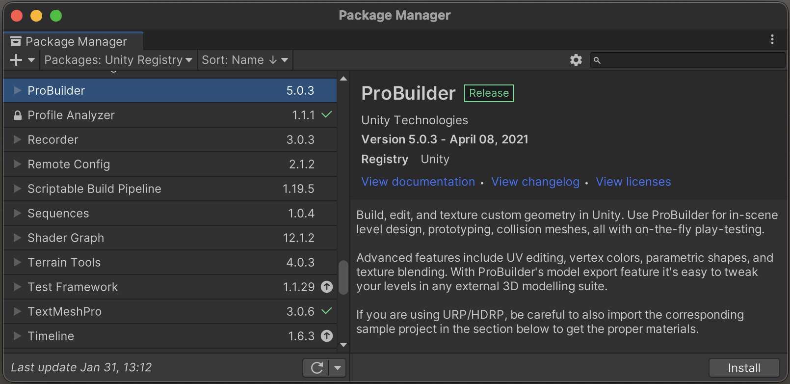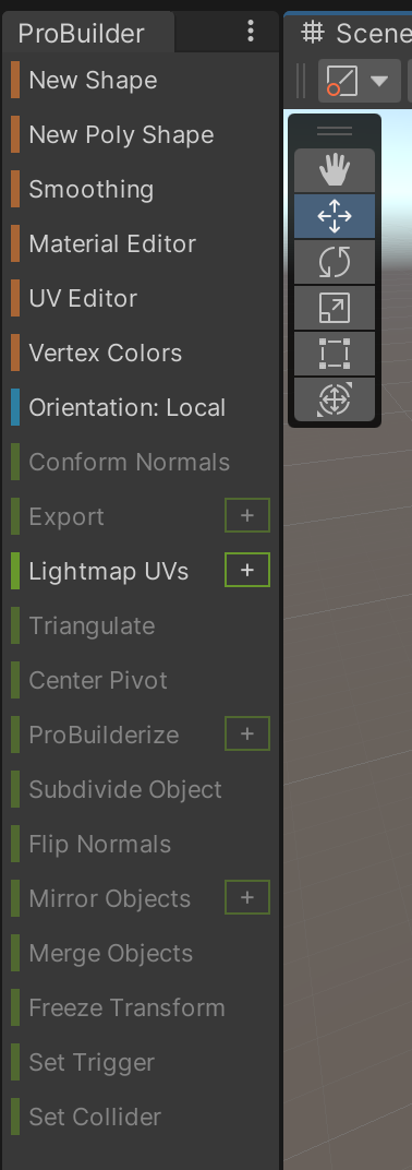 It is recommended that you close the ProBuilder Window when you are not using it to avoid conflicts with other overlapping tools. For example, trying to move a non-ProBuilder shape while in ProBuilder Face mode will make the tools seem unresponsive.