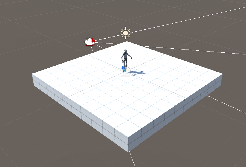 We will establish a reset boundary or "kill zone". Using a 3D Cube, we scale it to encompass the entire area that a player could fall into. It is very important to make sure our kill zone will catch the player if they run and jump in any direction.