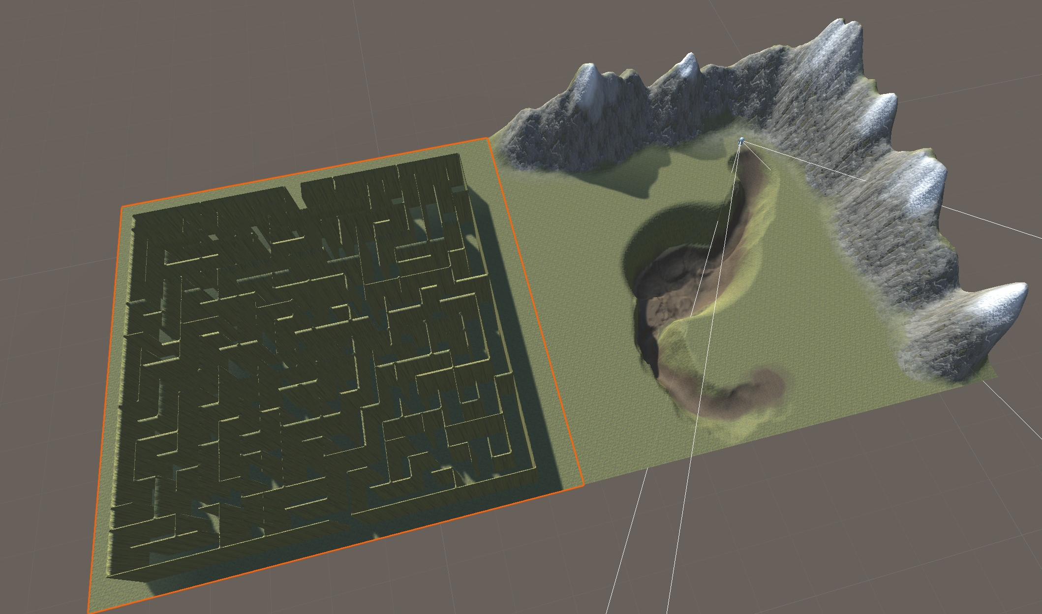 The second requirement asks that we utilize low terrain to create an area of interest that guides the player along a route. Remember: We can only lower the terrain if we previously raised it above its default altitude of 0.