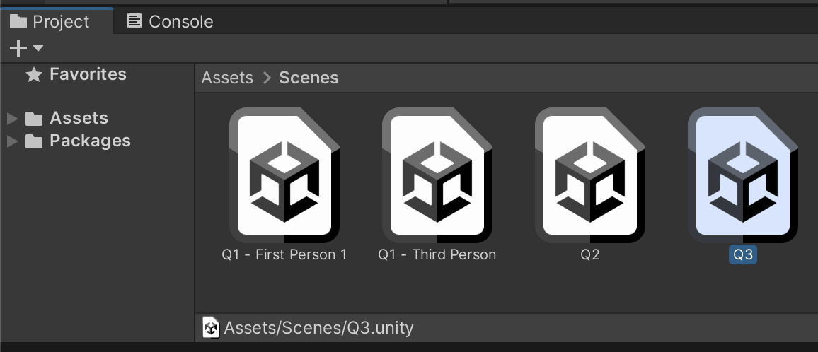 Create an empty 3D scene in your scenes folder and name it Q3.