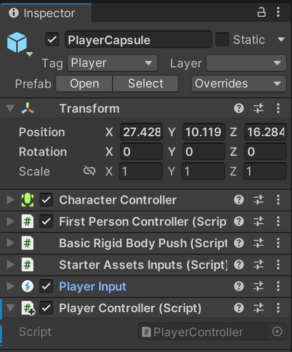 Create a PlayerController.cs in your /Assets/Code/Q4/ folder and attach it to your first-person PlayerCapsule.