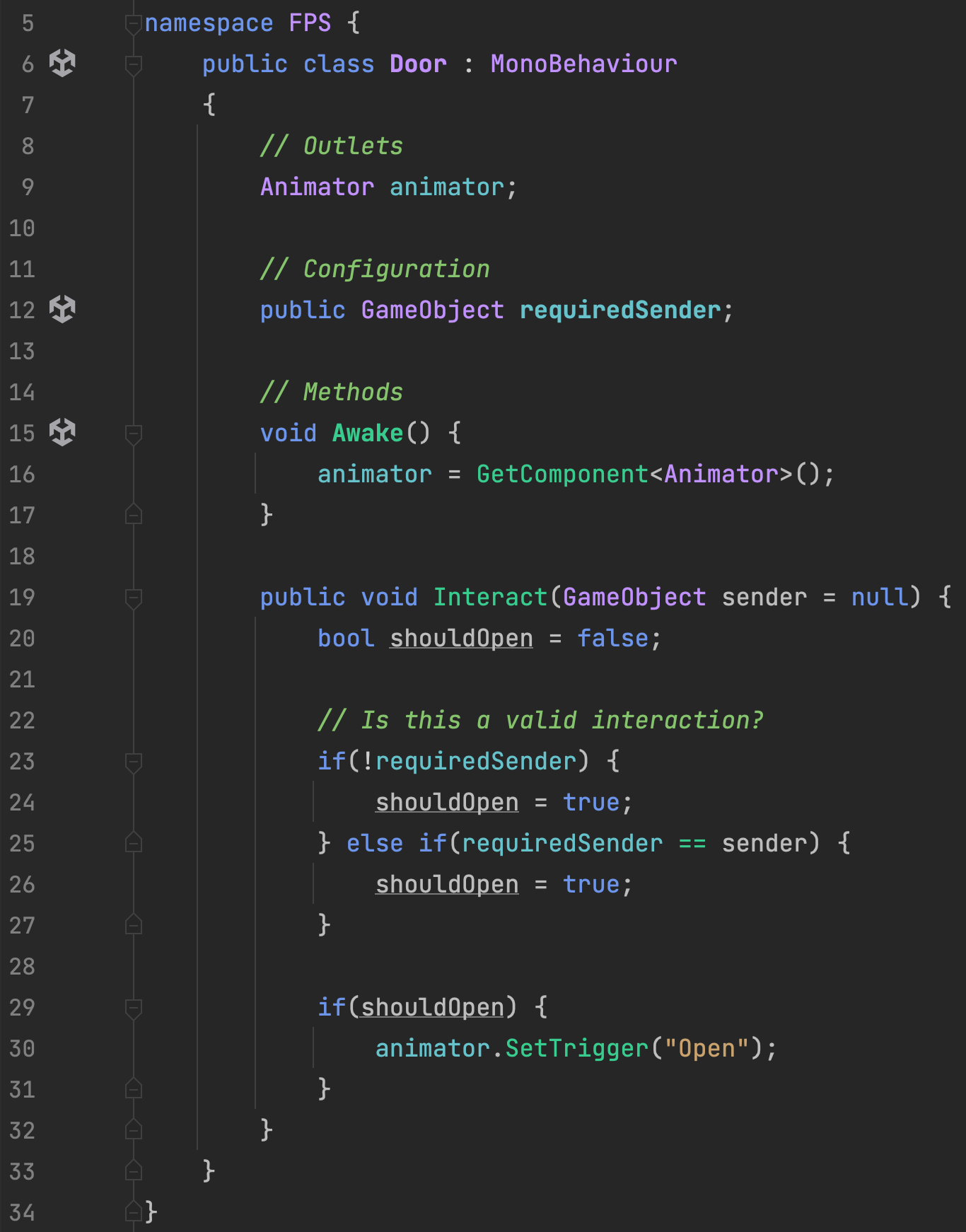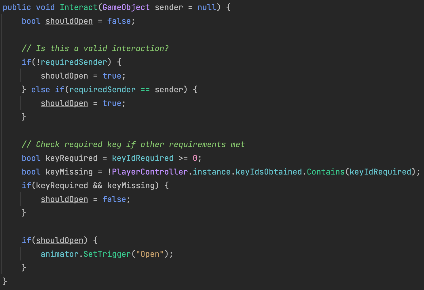 Notice that by specifying a default argument value for sender in the Interact function, we are able to avoid breaking existing functionality for the first doorway.