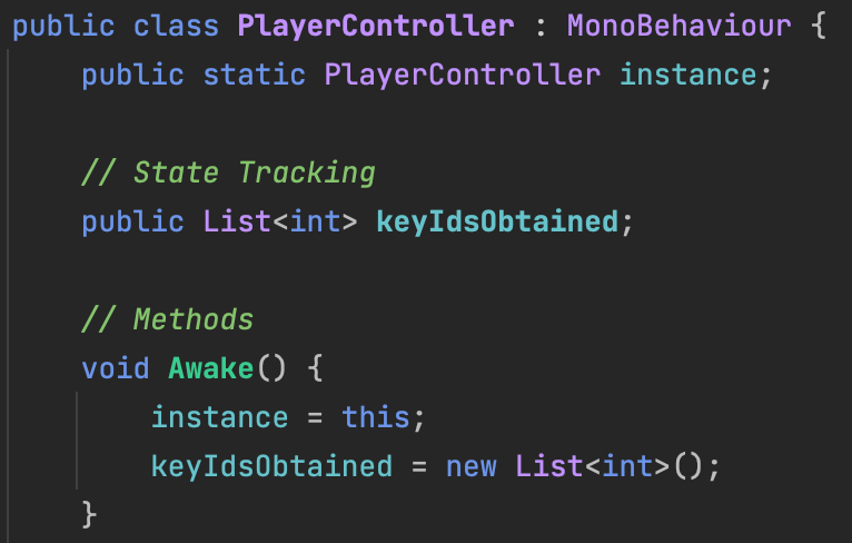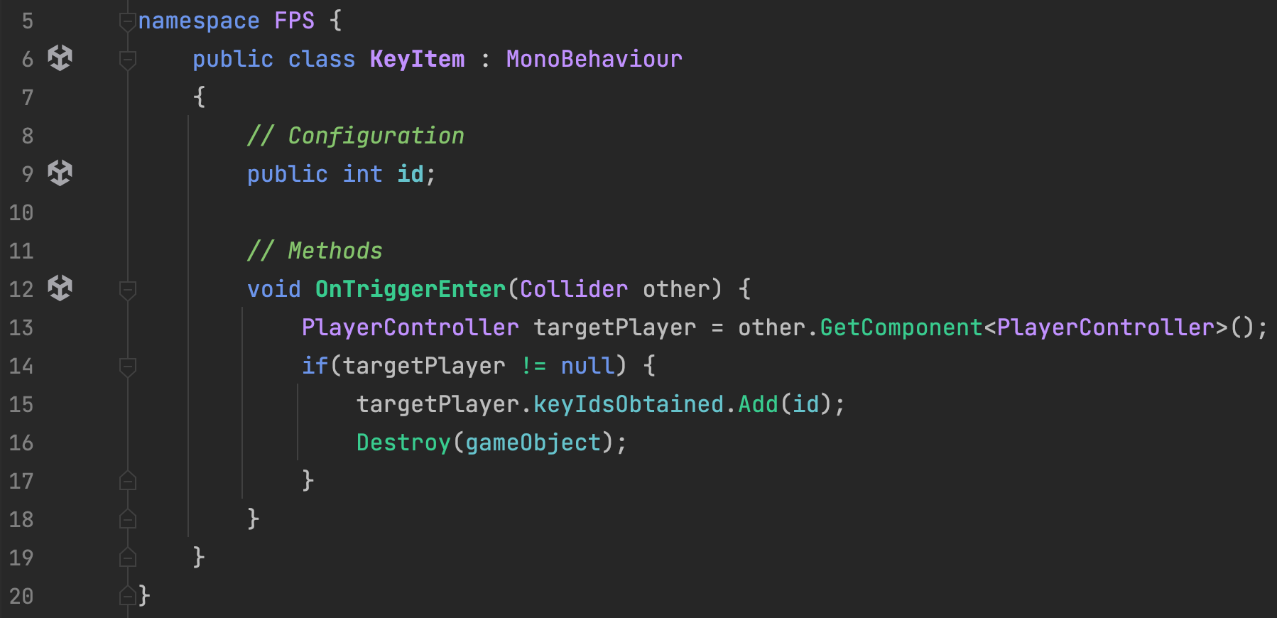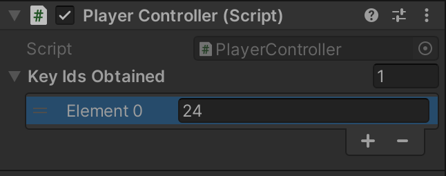 When the player collects a key, the KeyItem component will add its ID to the player's list of collected keys. This allows us to specify that certain key items are relevant to different interactions.