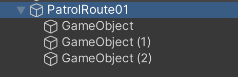 Create an empty game object and rename it PatrolRoute. The children of this object will be positioned as patrol points throughout the map.