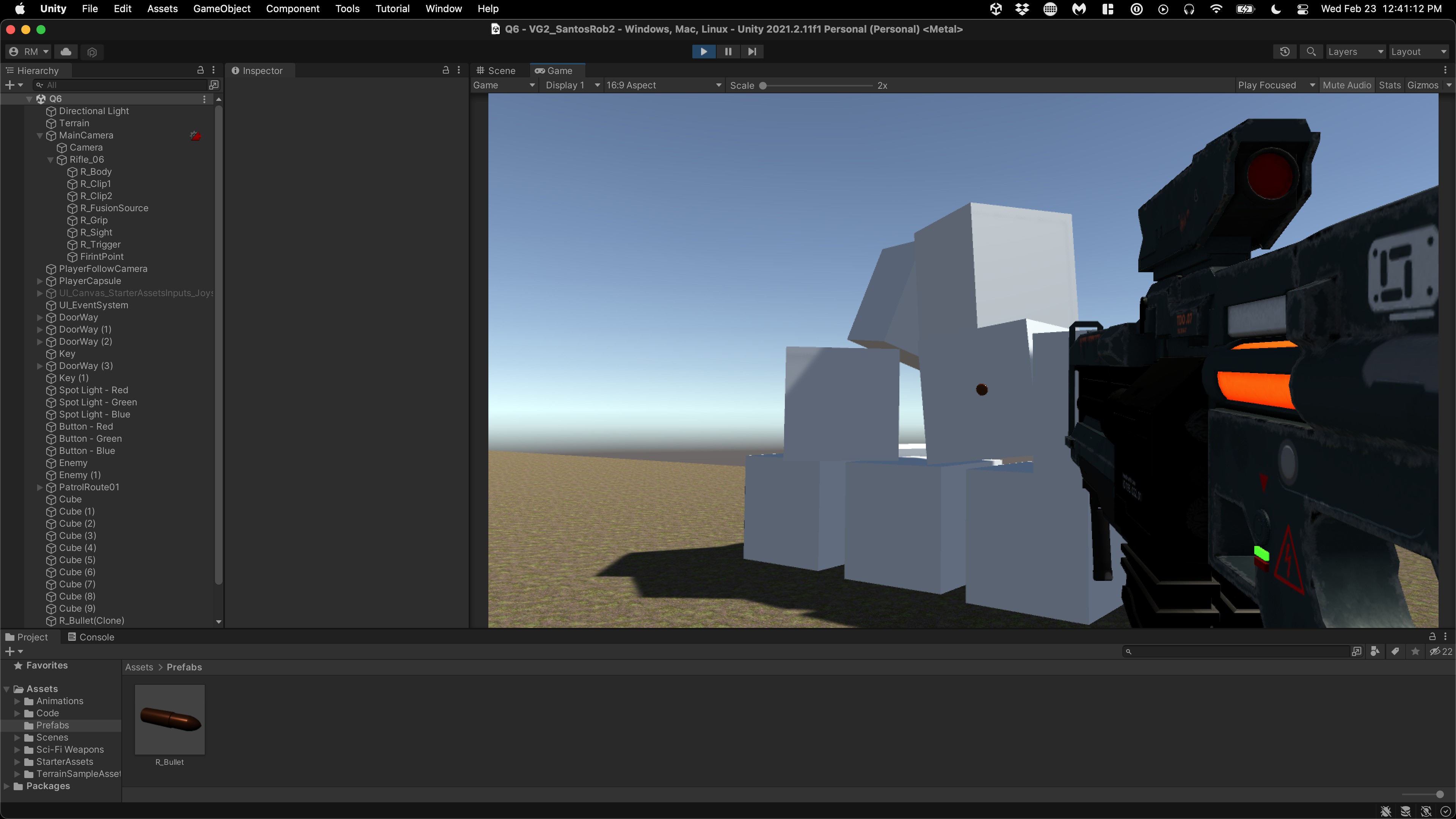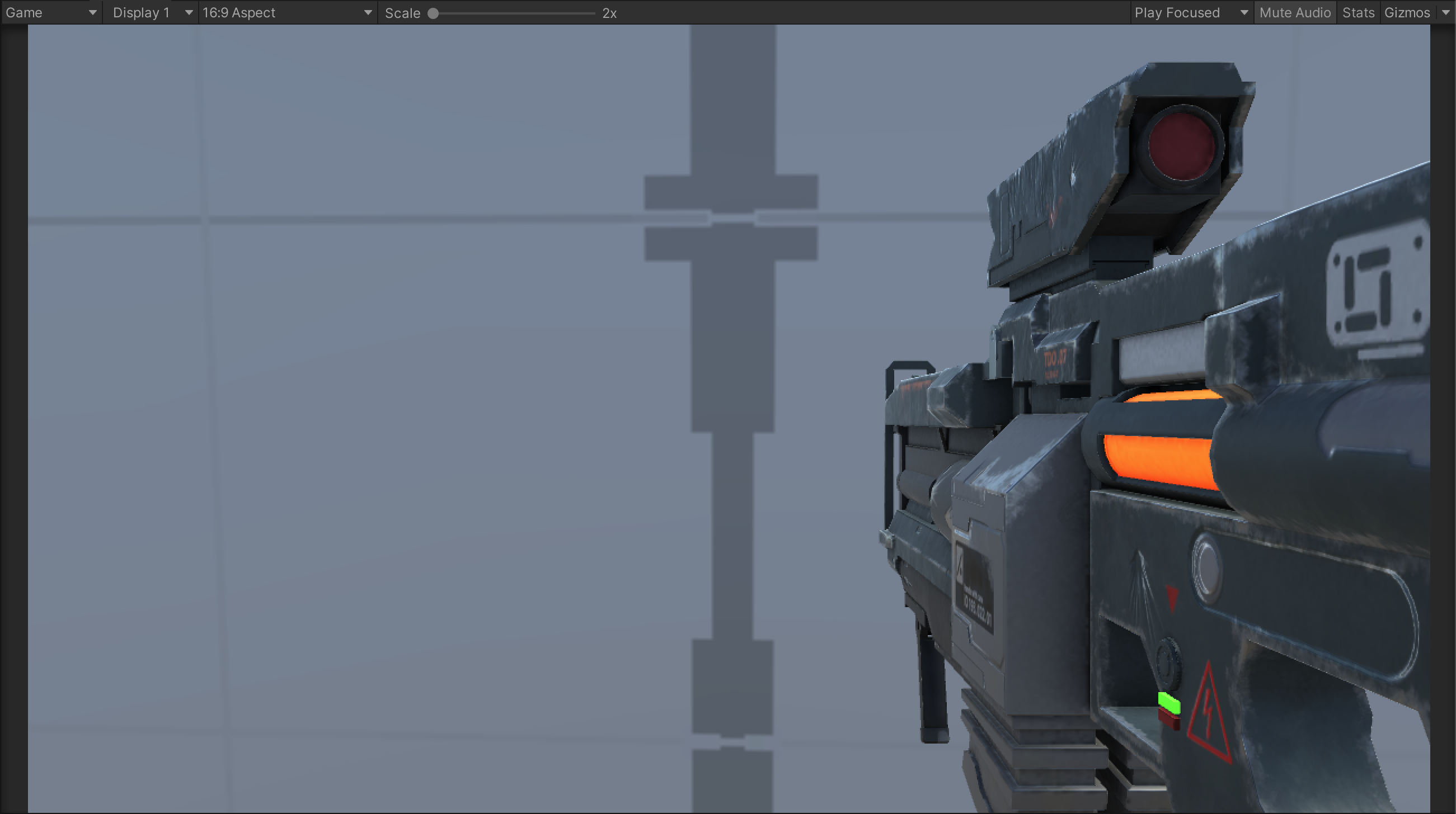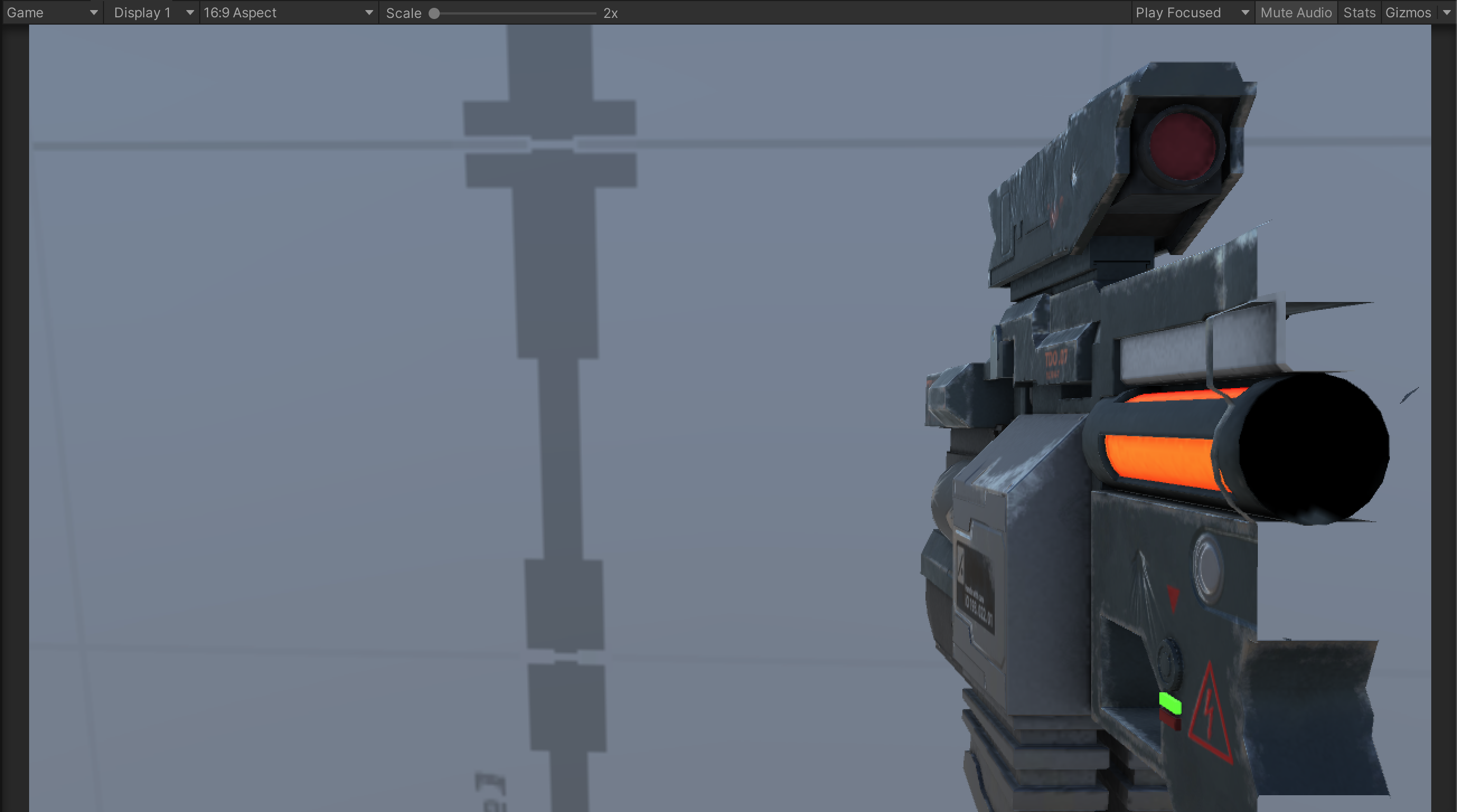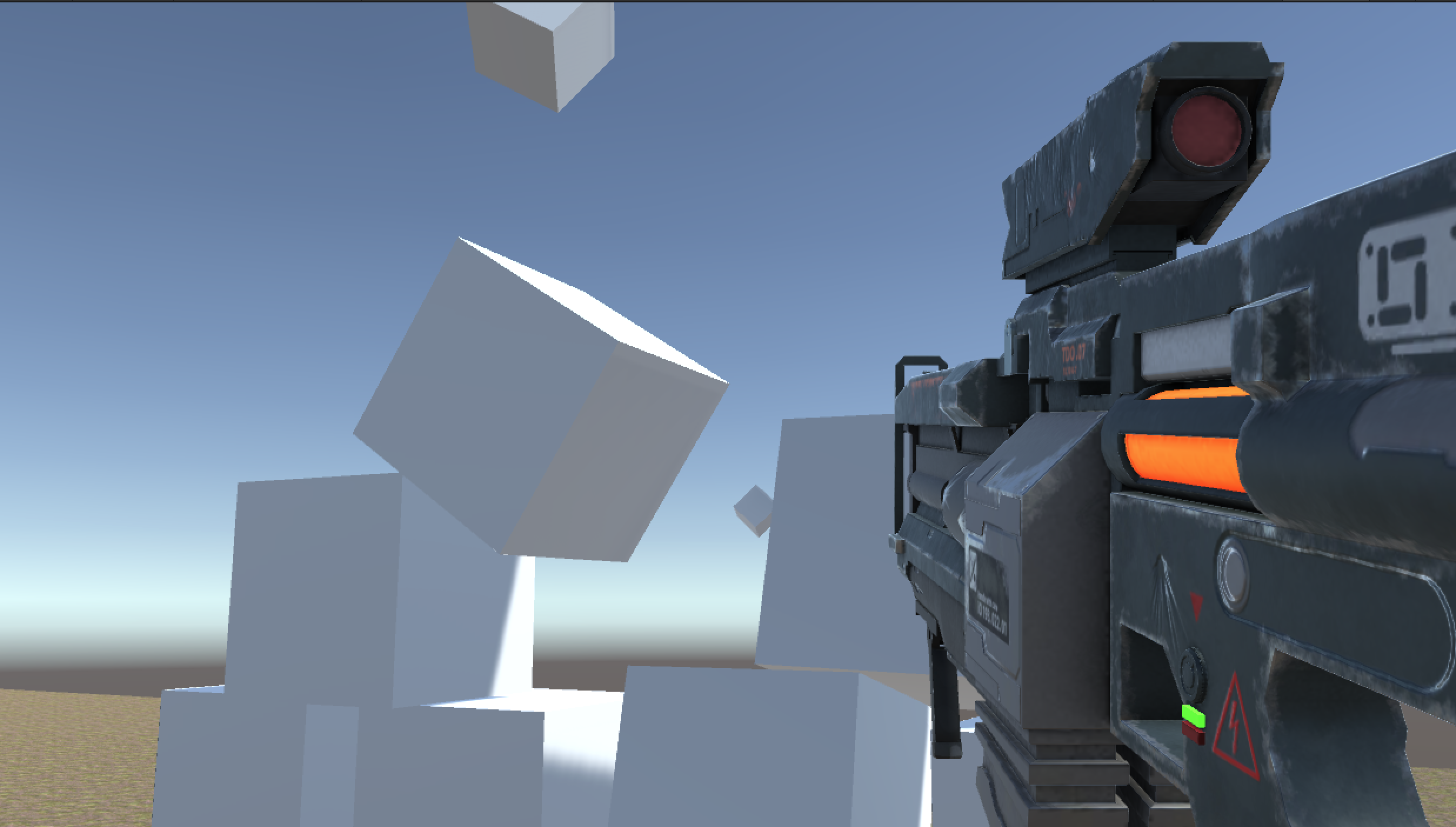 At this point, a few visual artifacts are present when playtesting. The visual of the gun is cut off close to the camera and the gun can pass through the environment.
