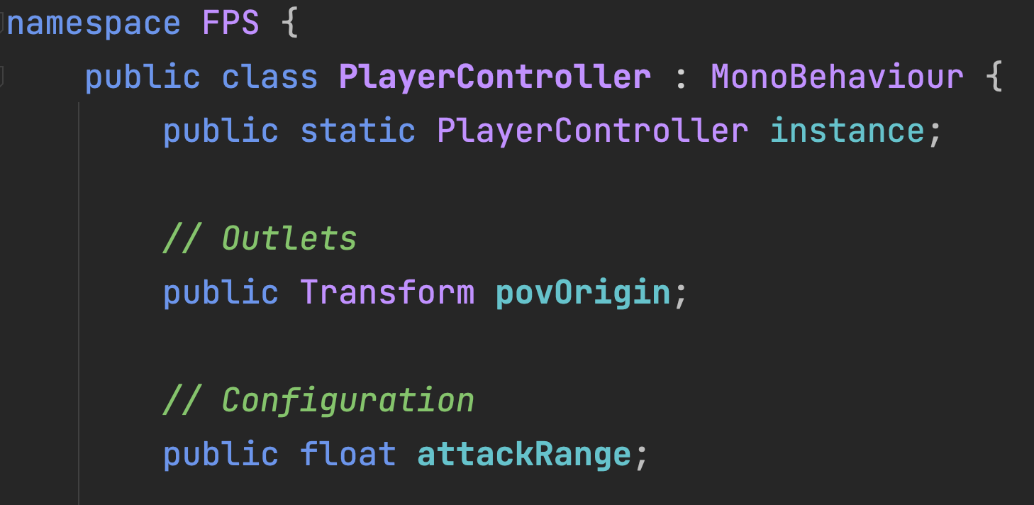 Hitscan attacks must originate from a specific perspective (even though they might appear to come from a handheld weapon. Usually this perspective is the active player’s camera view. In PlayerController, we will specify the location of this perspective with the povOrigin variable. The range of the attack will also be configurable.