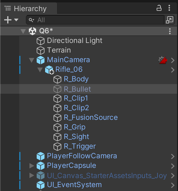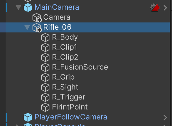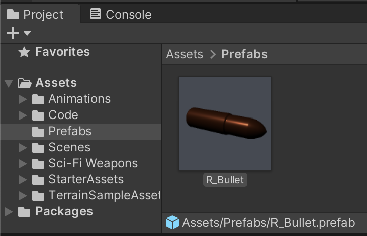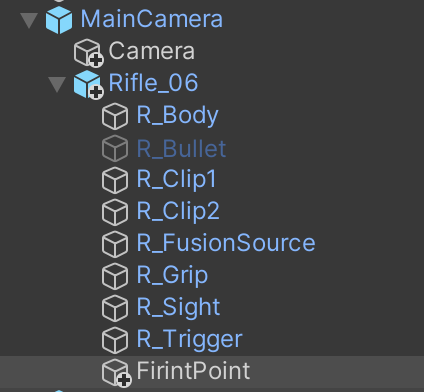 Next, prefab the Rifle's child Bullet game object in /Assets/Prefabs/.