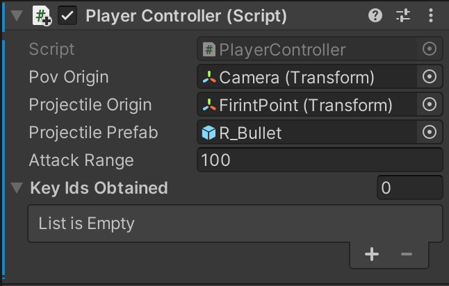 Assign the Bullet from the prefabs folder as the Projectile Prefab on PlayerController.