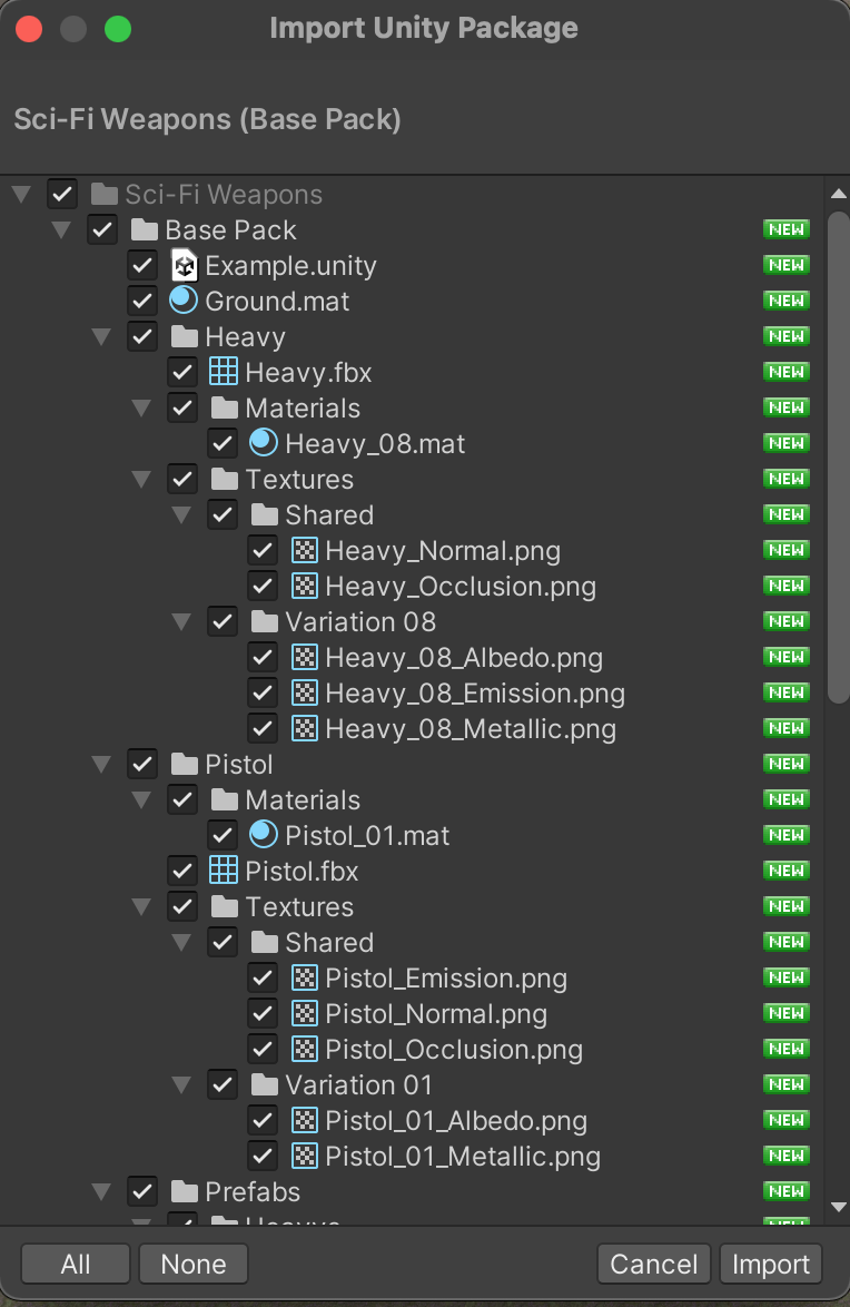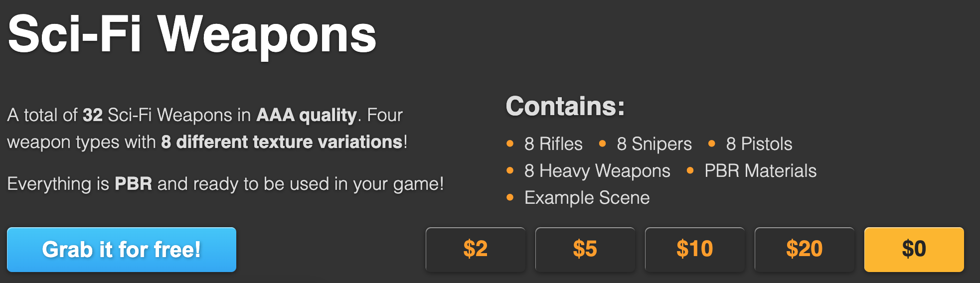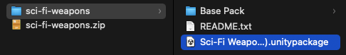 We will be using the Sci-Fi Weapons pack from DevAssets. They are available for free from http://devassets.com/assets/sci-fi-weapons/.