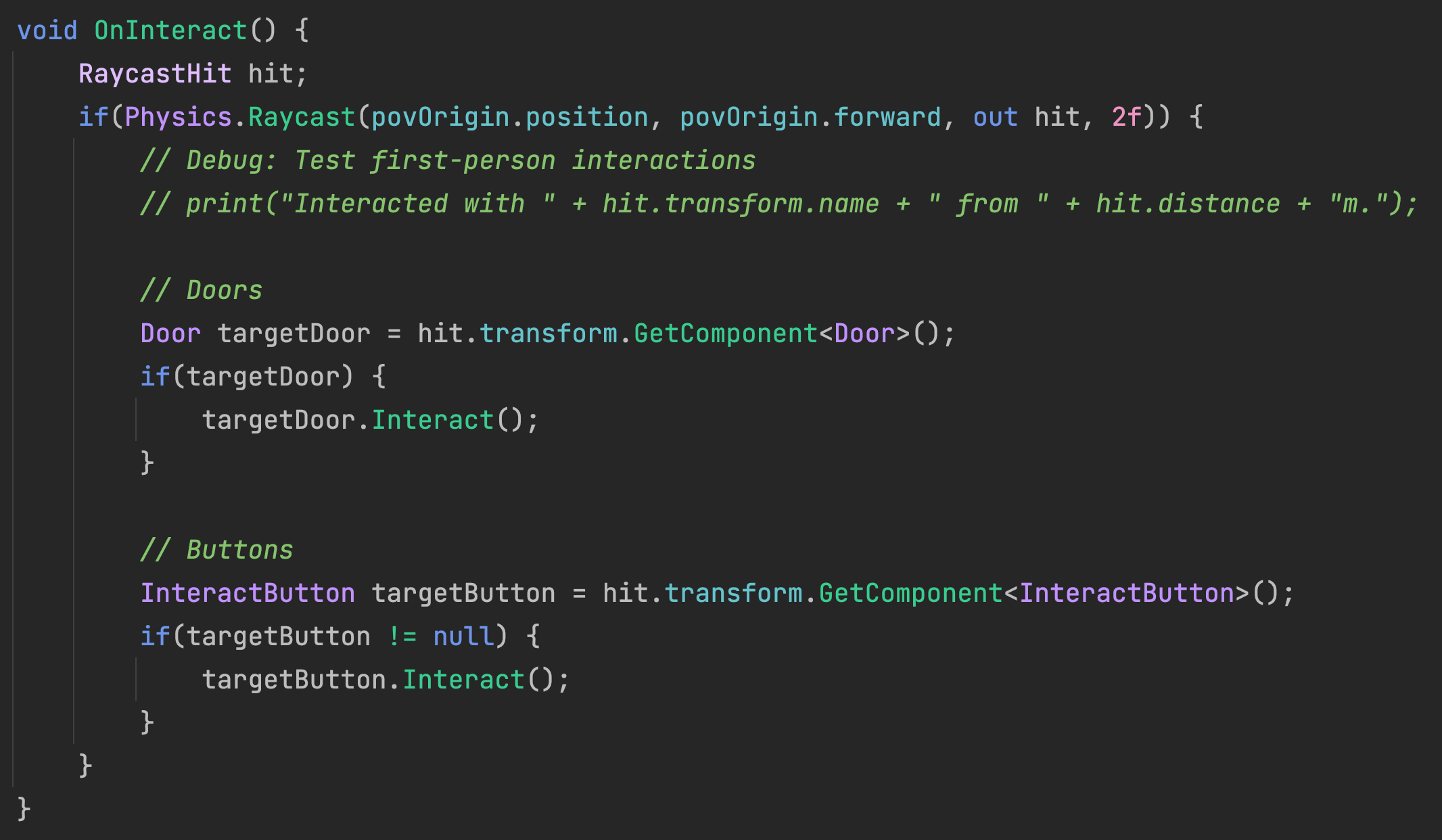 The third function should should be named OnInteract and will be nearly identical to your old E key code currently in the Update event.