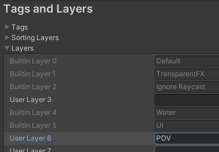 Create a POV layer in Edit > Project Settings > Tags and Layers.