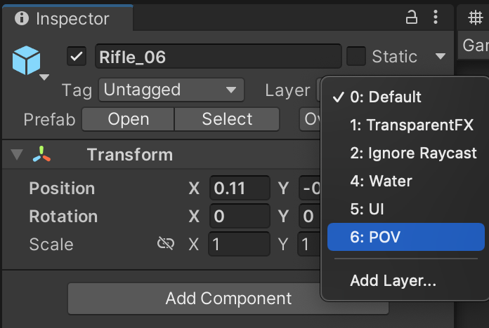 Assign the Rifle and all children objects to the POV layer.