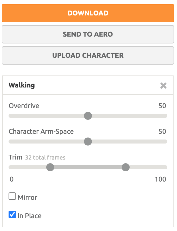 Repeat this process for a run animation. Try to find the most "normal" run animation possible. Make sure to follow the same settings as your prior animation and download.