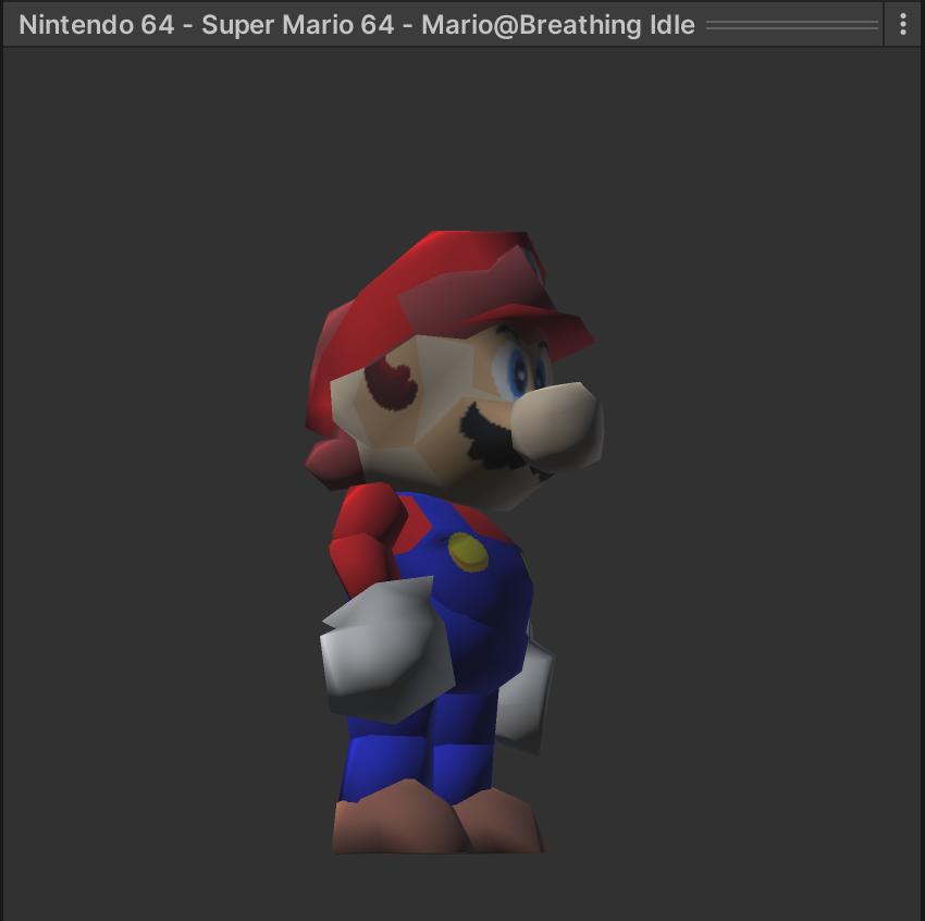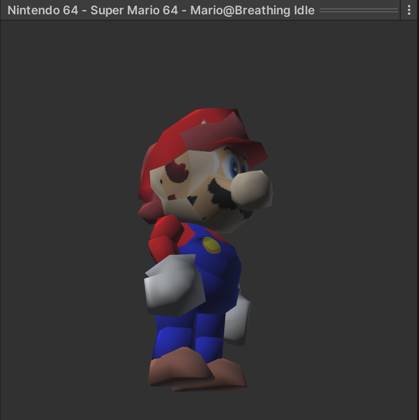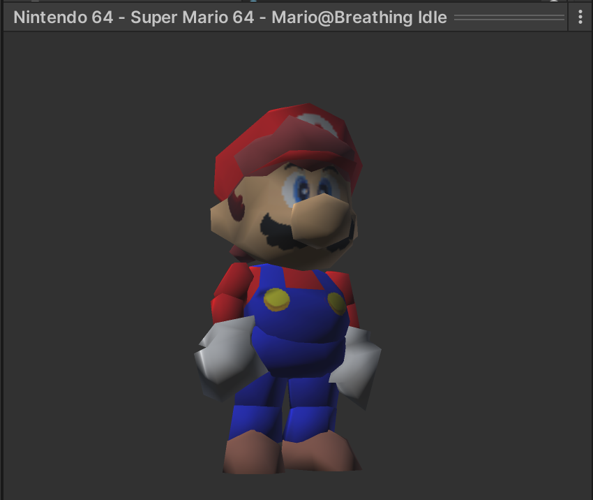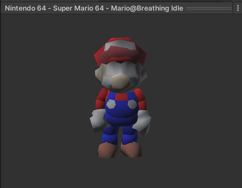 We'll need to change some settings on the model asset for it to work properly. If you inspect the Mario Idle model, you'll notice that some of the texturing is missing. Depending on how your 3D assets were made, some models may need extra clean-up before they render correctly.