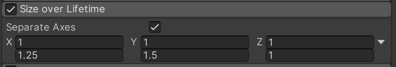 Enable and configure "Size over Lifetime" to finish the parent system for now. Even though this parent system will eventually be invisible, some of its sub-emitters will inherit this size.