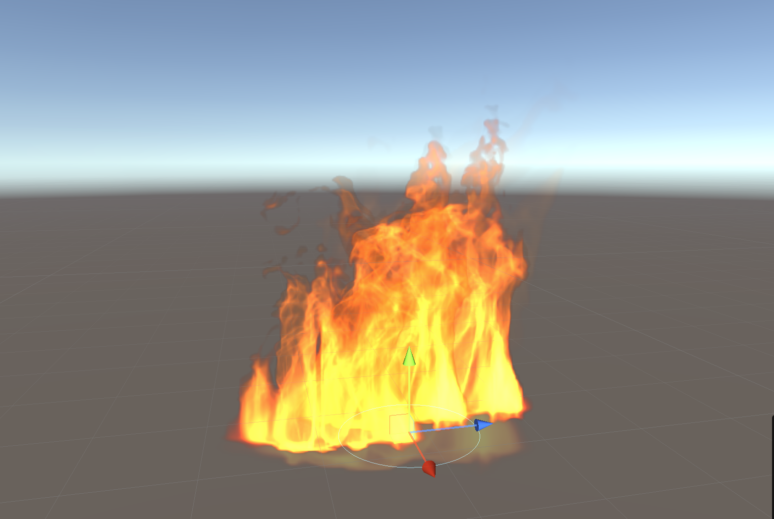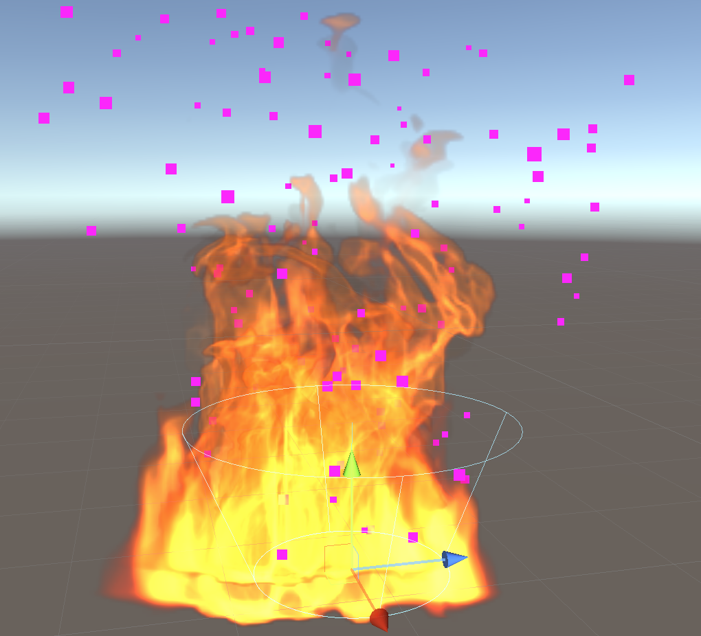 The completed particle effect showing both LargeFlames and FireEmbers particle systems: