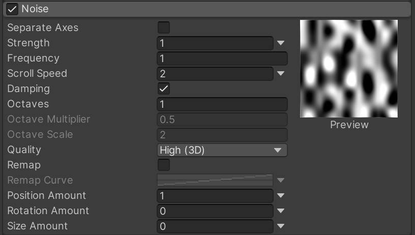 Finally, to add some organic randomness to the paths of the embers, enable and configure the Noise section.
