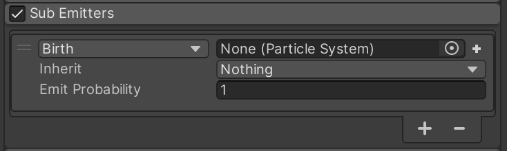 To prepare for this concept, enable the Sub Emitters section, but leave it unconfigured for now. We will revisit when we finish the other particle systems.