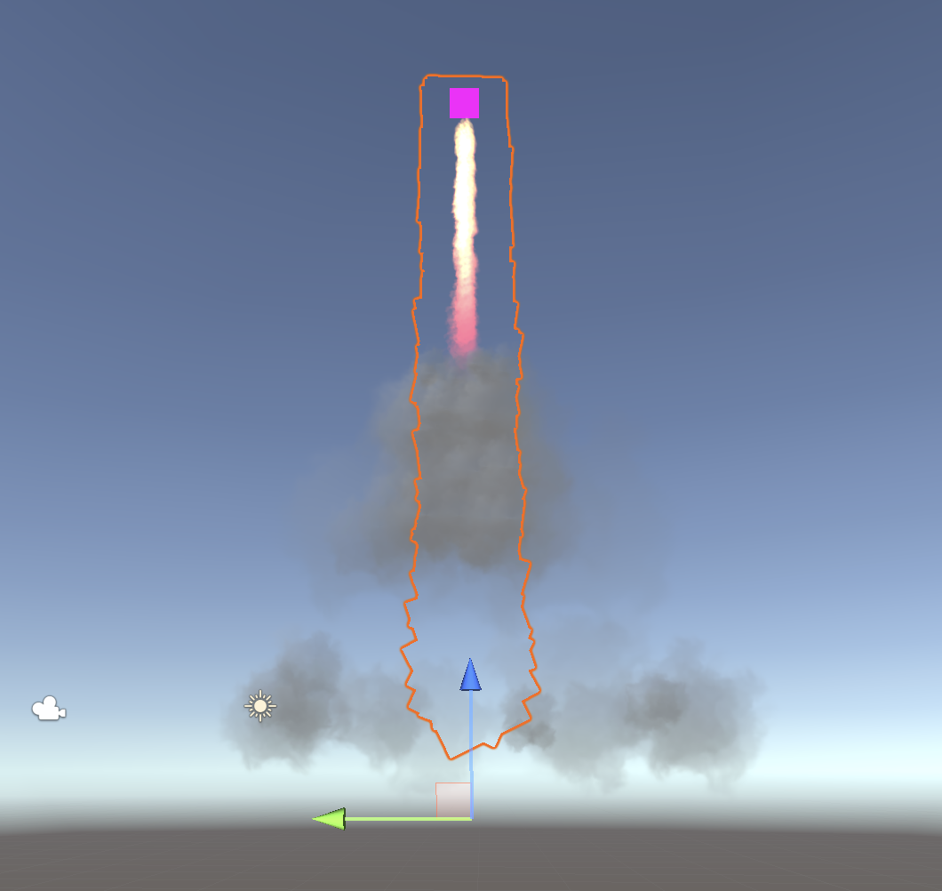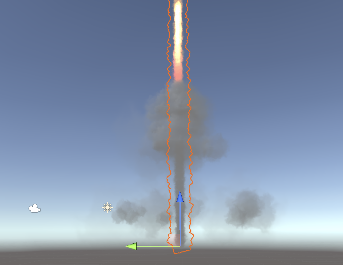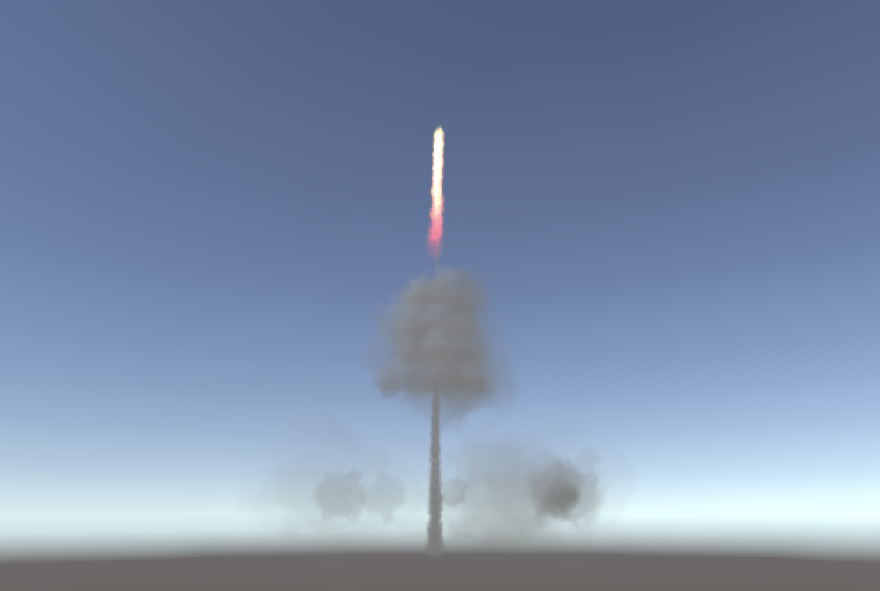 The particle effect so far shows the rocket, launch smoke, and fire trail systems together.