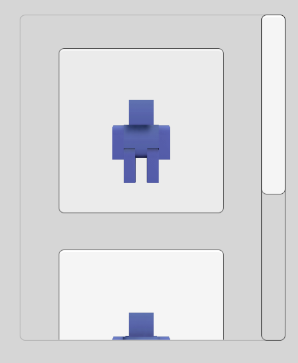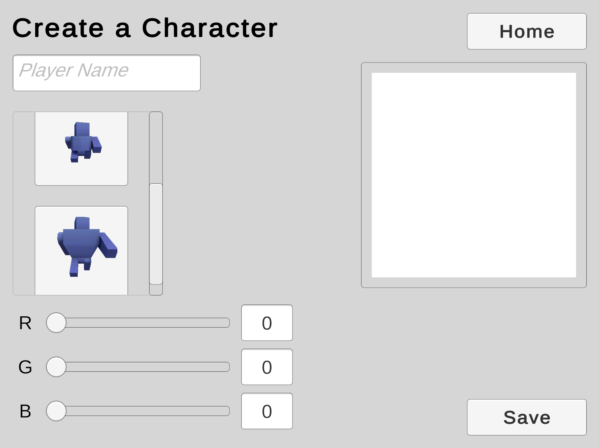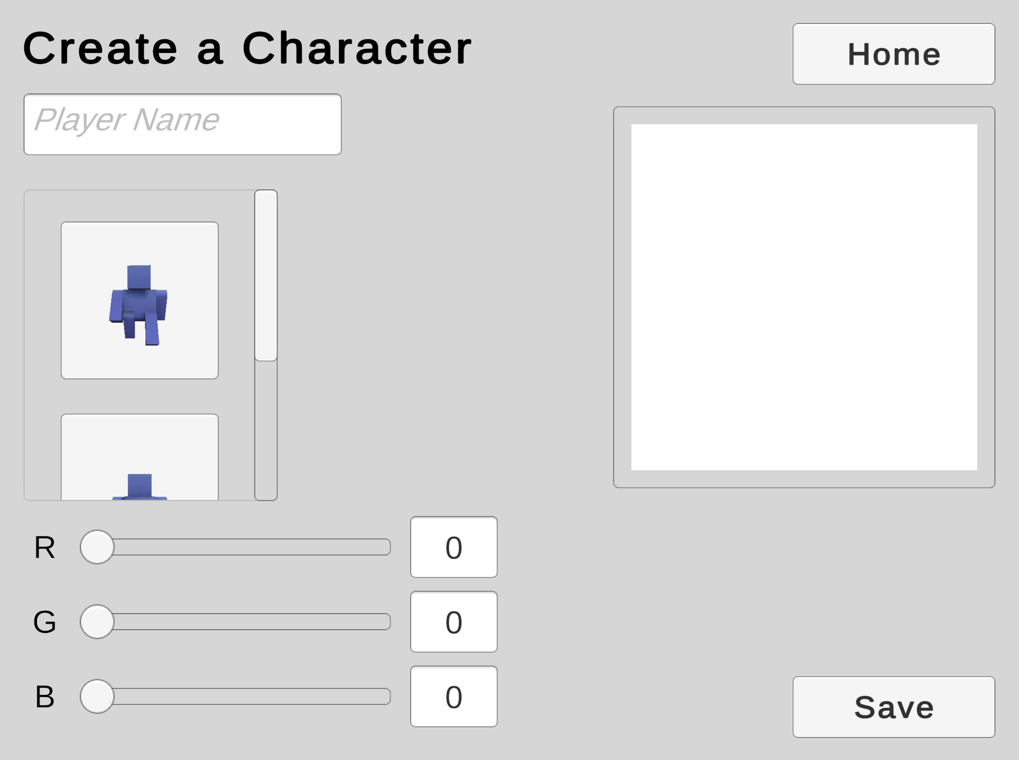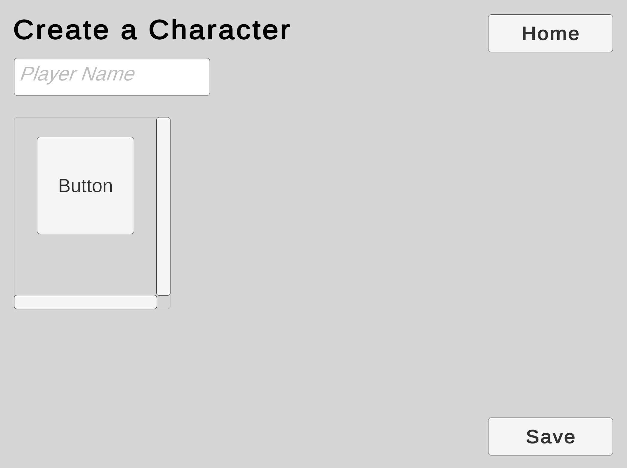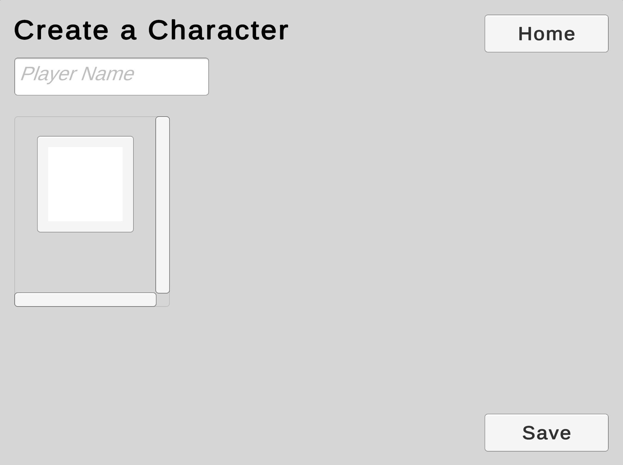 We will use a Scroll View to offer the player a choice from a collection of character models.