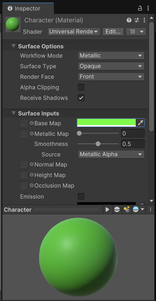 Inspect the Character material and change it's Base Map tint to a different default color such as green. (The player will have the freedom to customize their own RGB values later through the game UI.)