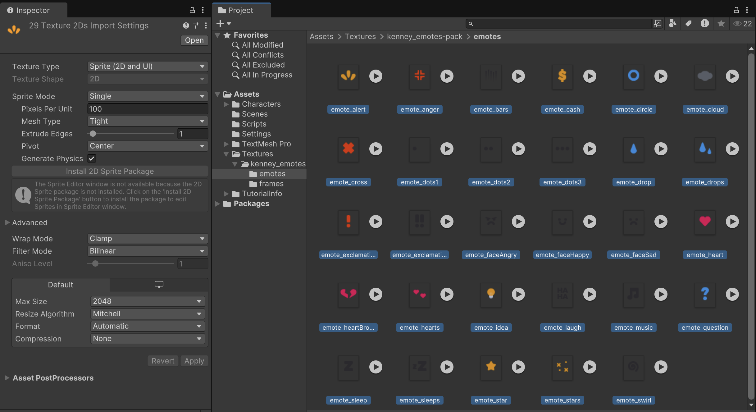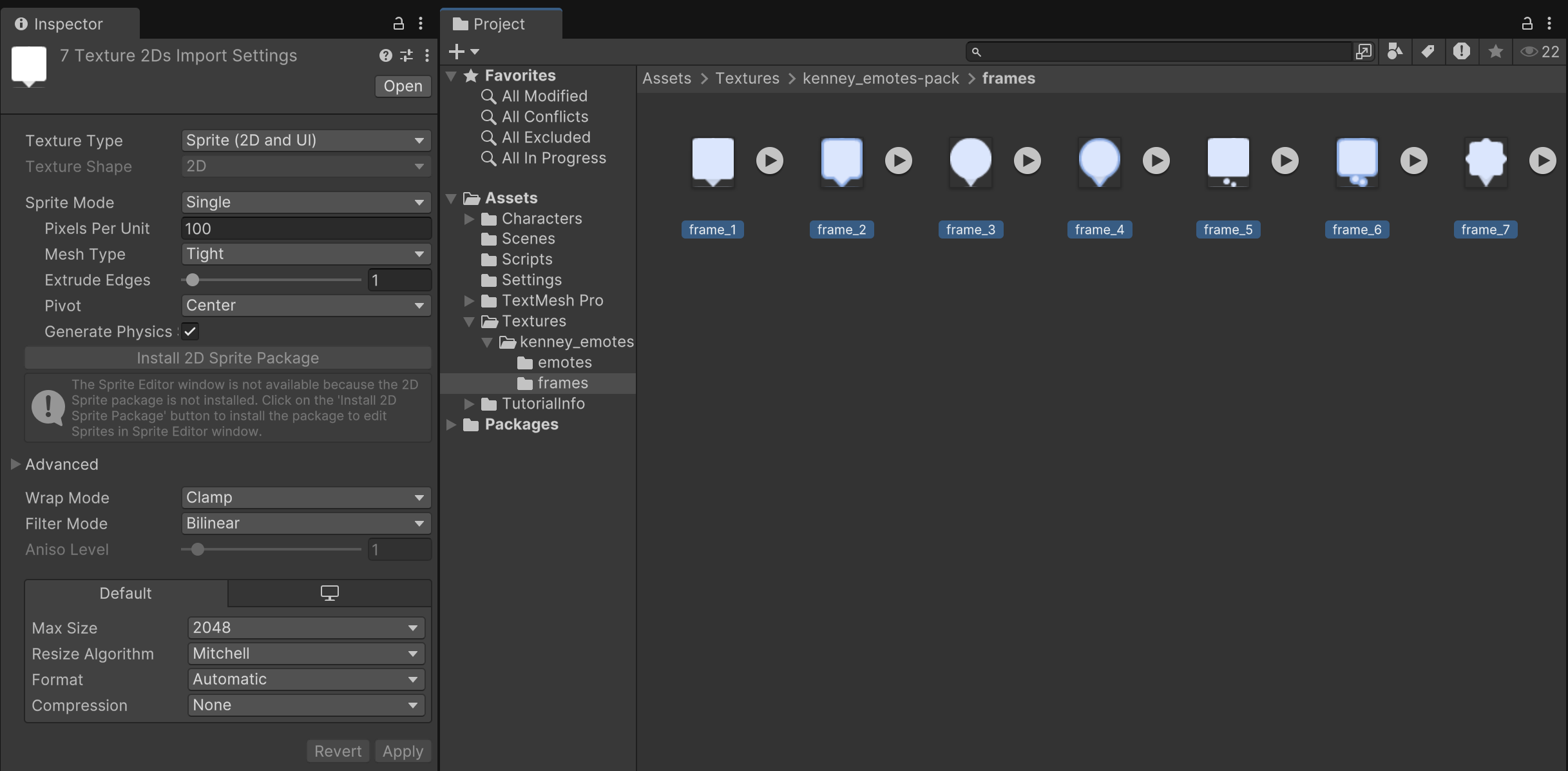 Also make sure the Emote Frames have the proper Import Settings.