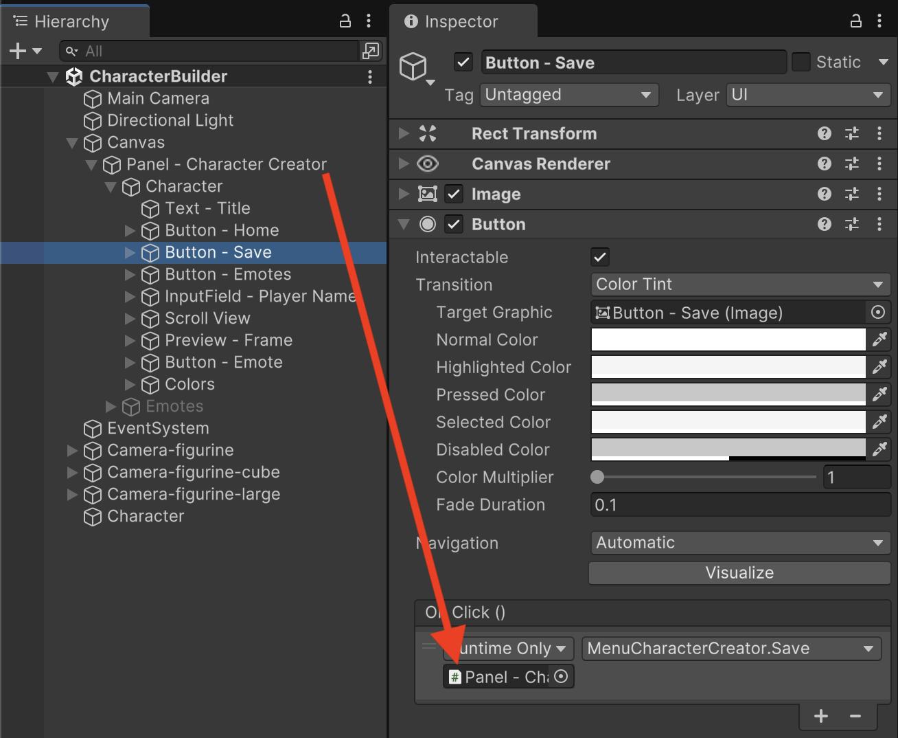 With all our Character save helper functions in place, we need UI button logic that will collect our emotes and trigger our save function.