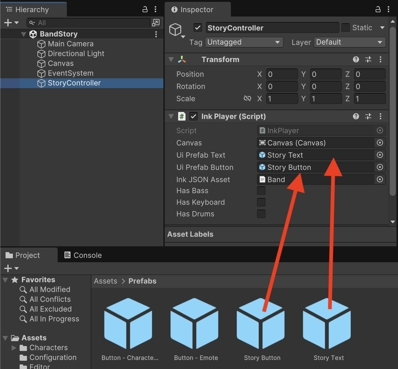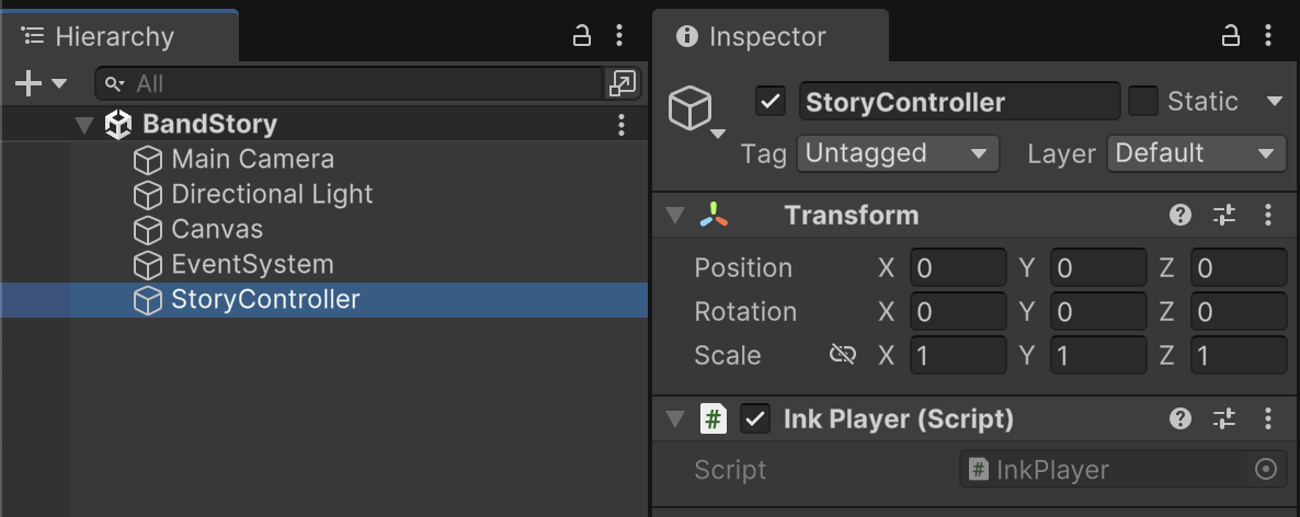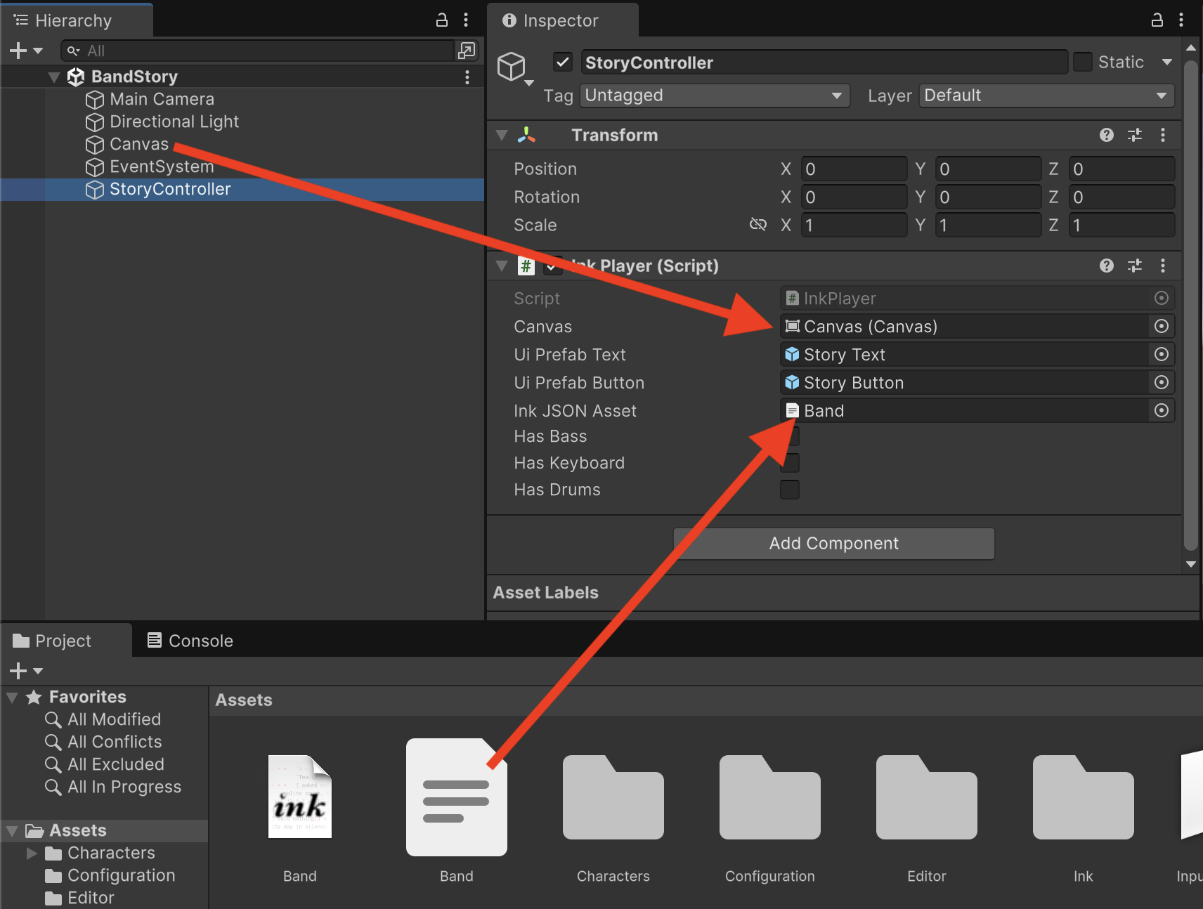Assign the Band.json file as the Ink asset in the configuration of the Ink Player.